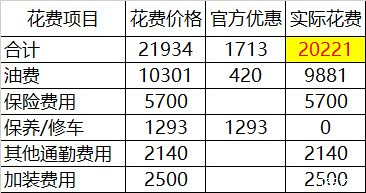 ②实际花费:总成本21934-保养费用1293(V值兑换)-提车一箱油420=20221元
