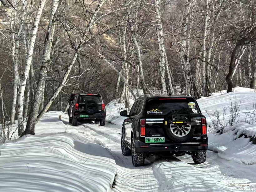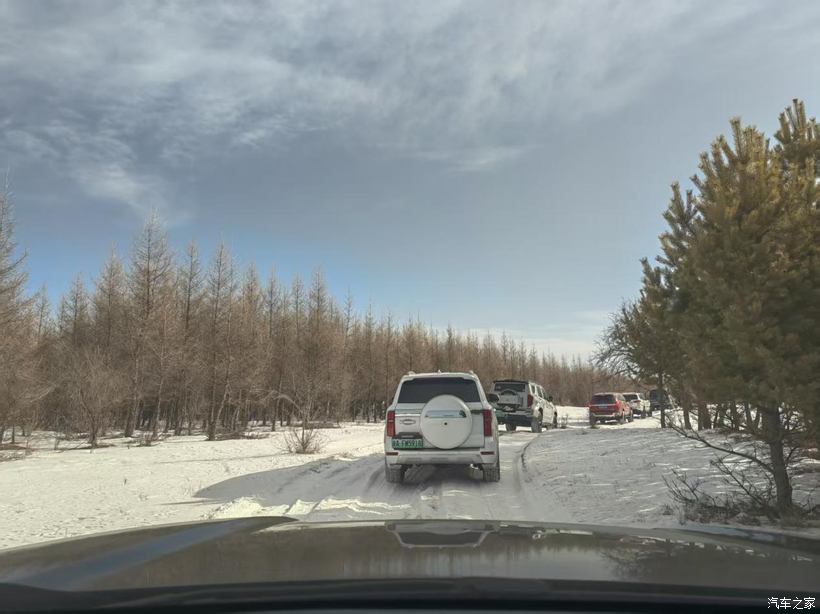 大年初四上午9点,车辆集合完毕,领队带着我们向乌兰布统深处进发,我驾驶着坦克500Hi4-T信心满满,春节前改装的竞技杠,底盘护板,终于可以拉出来练练手了,一路上白雪皑皑,尽显北国冬日的独特风光。不一会儿来到下道点,调整好4H模式,我们穿越冰河,行驶在冰面上,小心翼翼的,一路上只有我们车队,行至山林中,偶尔能看到(傻狍子)野兔子等小动物,我们刚想拿出手机准备拍照,一抬头,早已蹿进密林深处,动物们都很警惕,我是两眼只顾着看路,盯紧前车生怕掉队,这些小动物我儿子倒是看见了,用手指着告诉我它们往哪儿跑了,经过一上午有趣的越野穿越,我们找了个背风地方吃午饭。