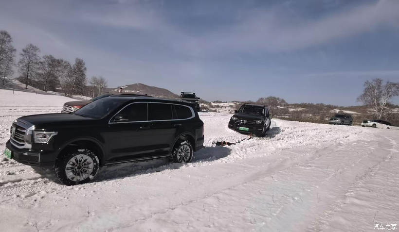 下午继续在林海雪原穿越,途中经过雪厚的地方,有一辆车困在雪地里动弹不得,手台里传来队友呼救的声音,我赶紧赶到陷车地点,看了一下,救援难度不大,调整好位置,拿出弹力绳,把两台***车绳固定好,两台车同时给油,凭借着坦克500Hi4-T强大的动力和四驱系统,轻轻松松救援成功,刚救出一个,另一个又陷车,我是当仁不让,包揽了全部救援。