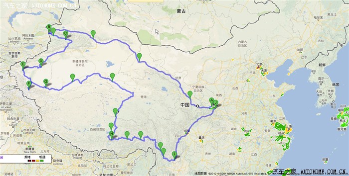 全程12800KM 说明:红字为住宿点,7月16 开始 咸阳——陇西——瓜州——乌鲁木齐——天池——霍尔果斯——新源 那那提——巴音布鲁克——库车——阿克苏——图木舒克(参加婚礼6天)——喀什——叶城——库地——叶城——和田——民丰——芒崖——格尔木——沱沱河——当雄——拉萨——林芝——八宿——德钦(香格里拉县)——丽江——西昌——成都——西安——咸阳 8月12日晚到家。