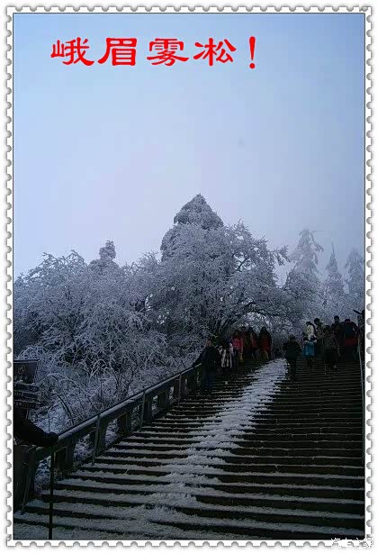从散客中心坐了2个多小时的景区大巴,来到了雷洞坪。这时候太后悔没在山下买冰爪了,路面和台阶上结了很厚的一层冰,到处是游人人仰马翻的情景,这时候居然连防滑效果不佳的草鞋都卖到了20元每双,租一双冰爪的价位涨到了30元,没办法掏高价买吧。