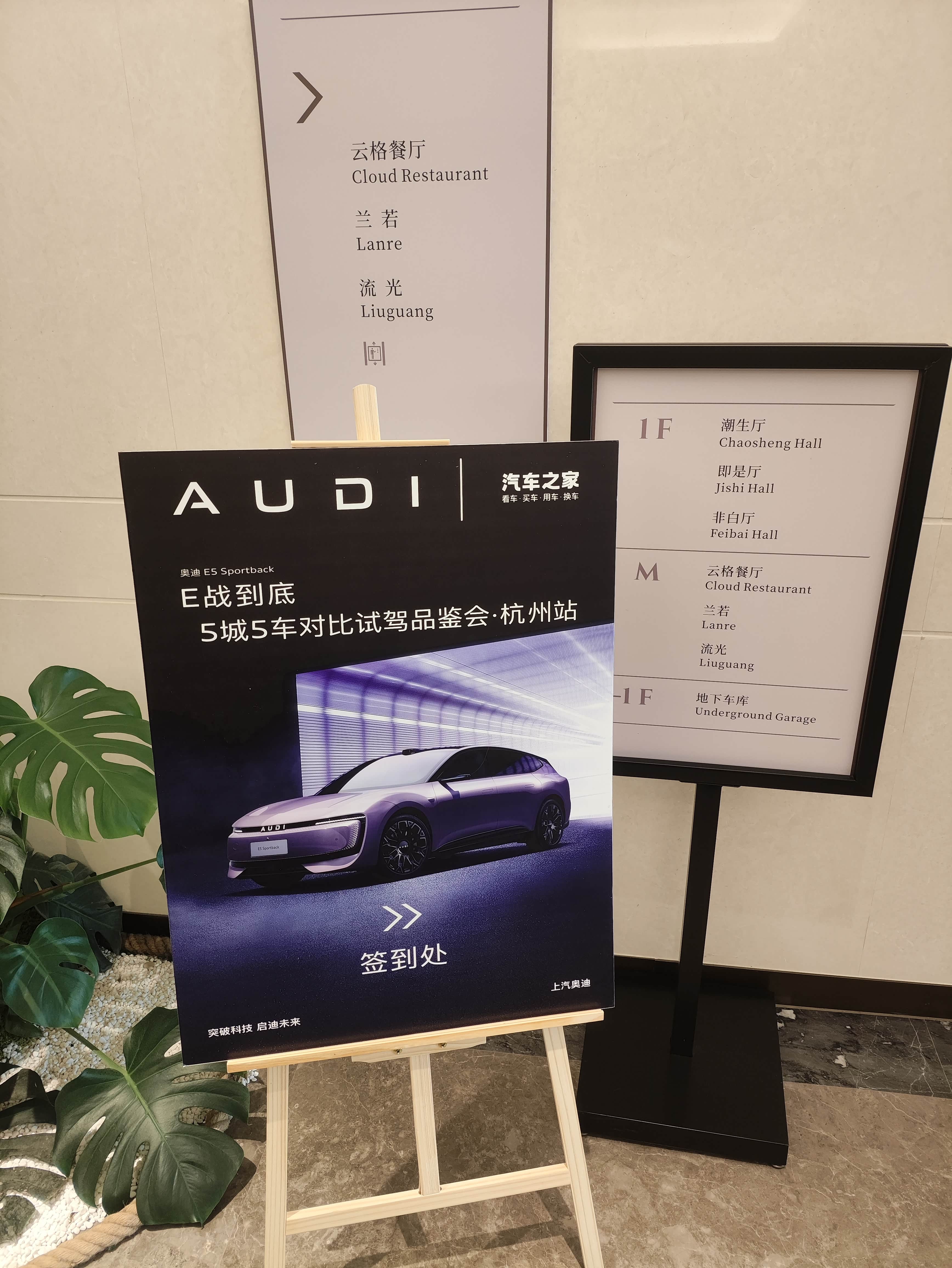 一个风和日丽的初冬,我参加了在杭州萧山世界旅游博览馆馆举办的5城5车对比试驾品鉴会杭州站的奥迪E5 Sportback E战到底活动。