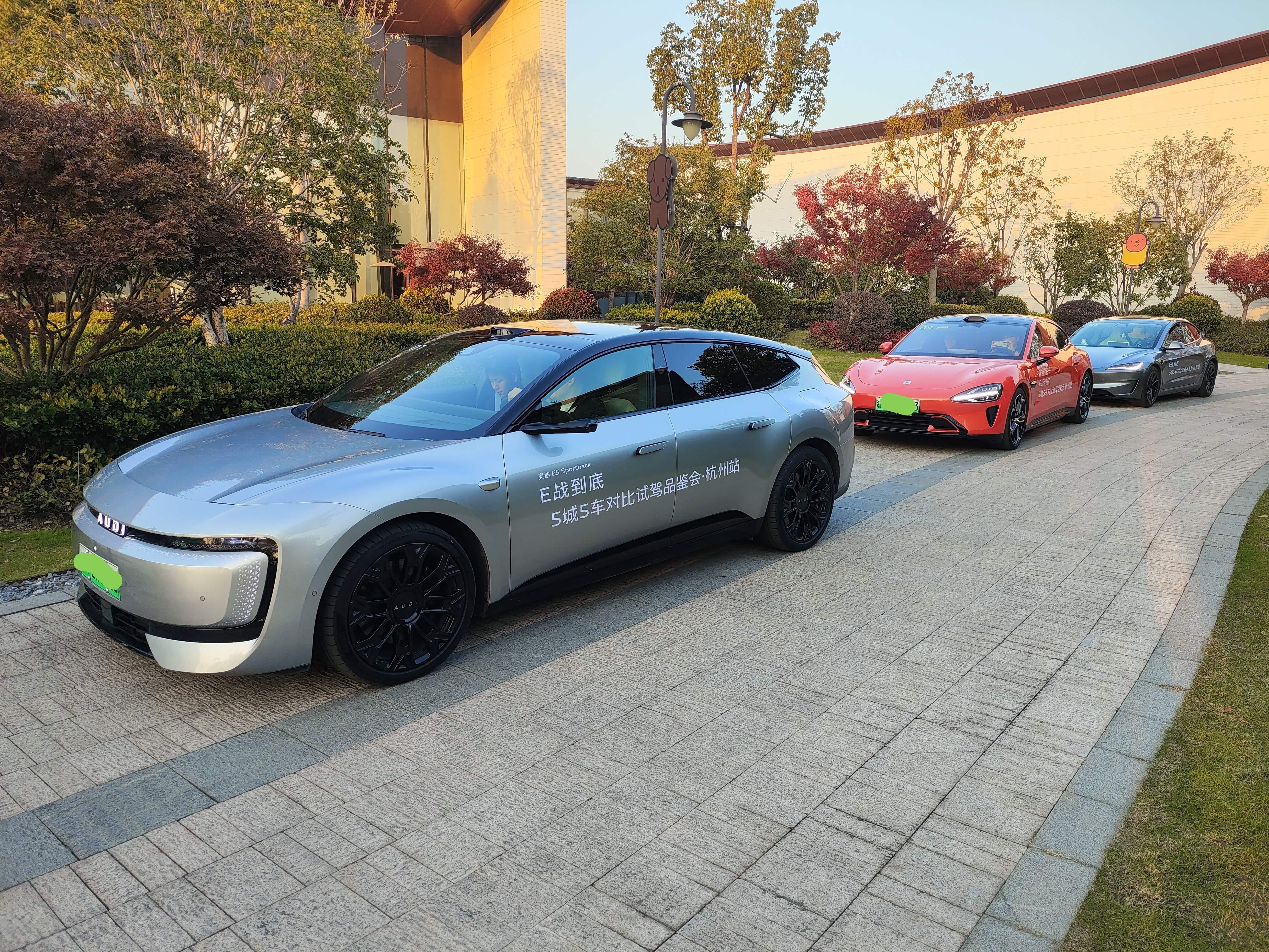 路线是从世界旅游博览馆内部道路出发,延眉山路行驶,再掉头回程,我们会一一体验奥迪E5 Sportback、某来ET5T、某米Su7、某米Yu7和某斯拉3。道路试驾中让我印象最深的是,奥迪E5 Sportback拥有渐进式转向和正负5度后轮转向技术,在对向单车道的时候掉头,很轻松就一把过,而其他车需要向右借道才能一把过,甚至两把才能过。城区辅助驾驶方面,奥迪E5 Sportback的表现也可圈可点,得益于头顶的激光雷达、多个毫米波雷达以及多个摄像头等,再结合奥迪新一代的 “自适应驾驶辅助系统增强版”系统,可以大幅减轻驾驶负担,它能自动完成跟停、跟随前车重新起步,并在车道线清晰时保持居中,给我的体验感非常棒!空气悬架+CDC减震,让它可以自动调节悬架高低软硬,所以给我感受是操控很好,过减速带也不怎么颠簸。奥迪E5 Sportback用了前后永磁同步双电机,百公里加速只有3.4秒,而且还有动力强、转速高、电耗低的特点,可惜我们的试驾路线复杂,最高时速也限制在60公里/小时,无法体验出它的真实性能,希望以后有机会的话能在更适合的场地再体验一下。