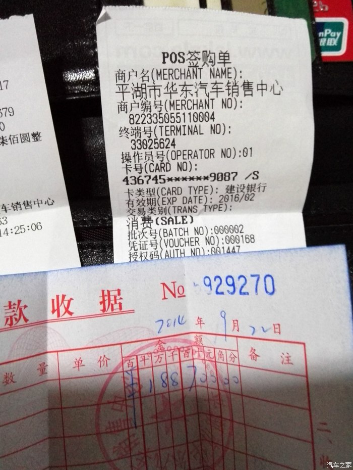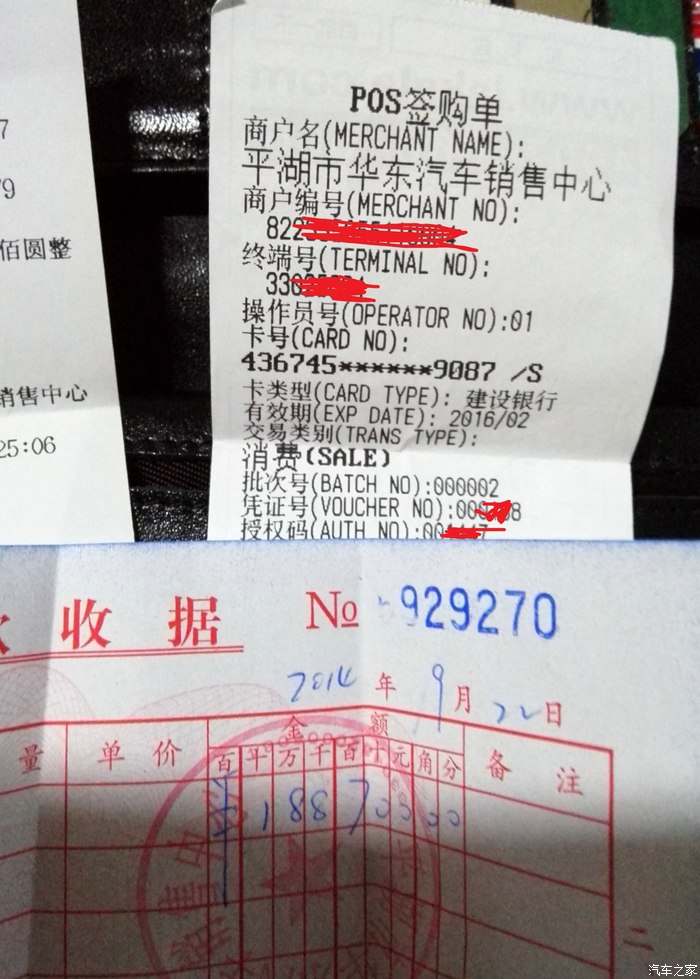 提车当天刷款凭证,这里要批评下四儿子不厚道了。发票到今天也还没给开过来,导致车载信息系统也没给开通,国庆前上牌也不行,效率有点问题啊