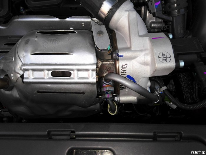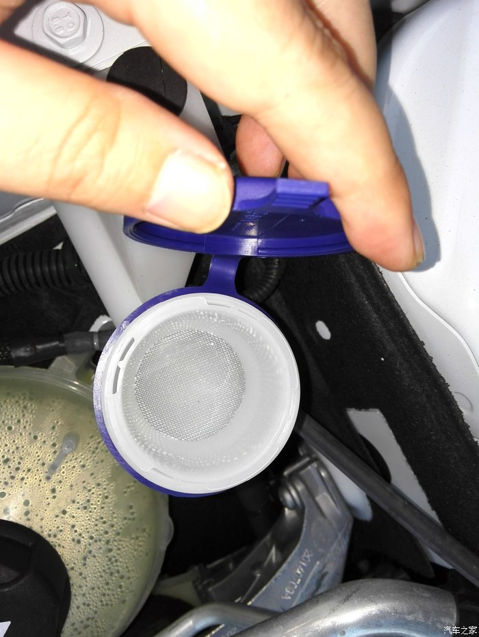 引擎舱布线还是挺规整的,另外加玻璃水这里配了个滤网还是挺厚道的,在赞的同时也表示下疑惑,顶配的车,几乎19W的价格,引擎盖还用原始的支撑,液压杆能有多贵么!8月份出厂的新车涡轮肿么就生锈的来??不知道其他车友有木有这个情况。