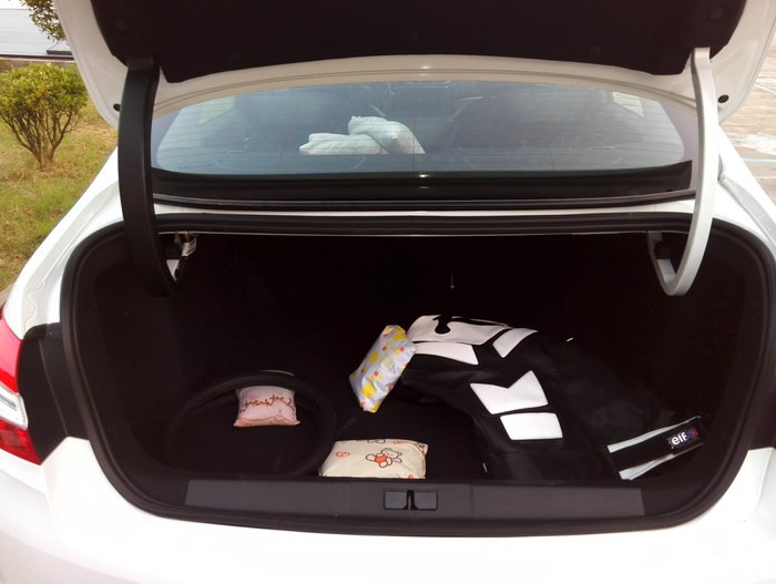 本人身高180体重155,有个习惯就是喜欢把驾驶位置调到最后面撑直着手臂开车,很多车型都不能令我感到满意,但是小八做到了。如上图一样,我调整好座椅后,驾驶员后面的座位还有一掌多的距离,瞬间有种5系感觉有木有!后备箱进深还可以,虽然只有四百多升,但是后排座椅可以放倒,多少也可以弥补点不足吧。全车内部储物空间灰常少,另外车门上放水瓶的那块位置貌似设计的不够精细,放个瓶子在里面就哐当哐当滴晃,挺不爽的。