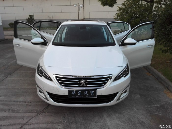 最后LD终于同意选新款的1.6T顶配白色小狮子了哈哈。当天虽然正好四儿子搞活动,但是新款上市,算好价格落地价要21W零点,一毛钱都木有优惠。于是乎LD说要考虑下,当天只能罢了。回到平湖,心有不甘啊,立马再到2级经销商那里谈价格。2级经销商那里也木有优惠,但是还是很厚道滴给返还了点回扣,外加装修礼包一堆,于是乎冲动的性格又一次战胜了理性的头脑,赶在LD犹豫之前就下了订单。说到新款408的颜色还是挺令人纠结的。个人认为黑色的外观配上LED大灯要有杀伤力的多,可惜嘉兴的四儿子说没有外黑内黑的配色,只能作罢,参考LD的意见后选定了外白内黑,毕竟第一台车的浅色内饰太不经脏了。在经历了15天的等待之后,终于9月22日来电话通知我可以提车了。好了,废话不多说了,水平有限码字也累,大体情况介绍清楚了就上图了嘿嘿。