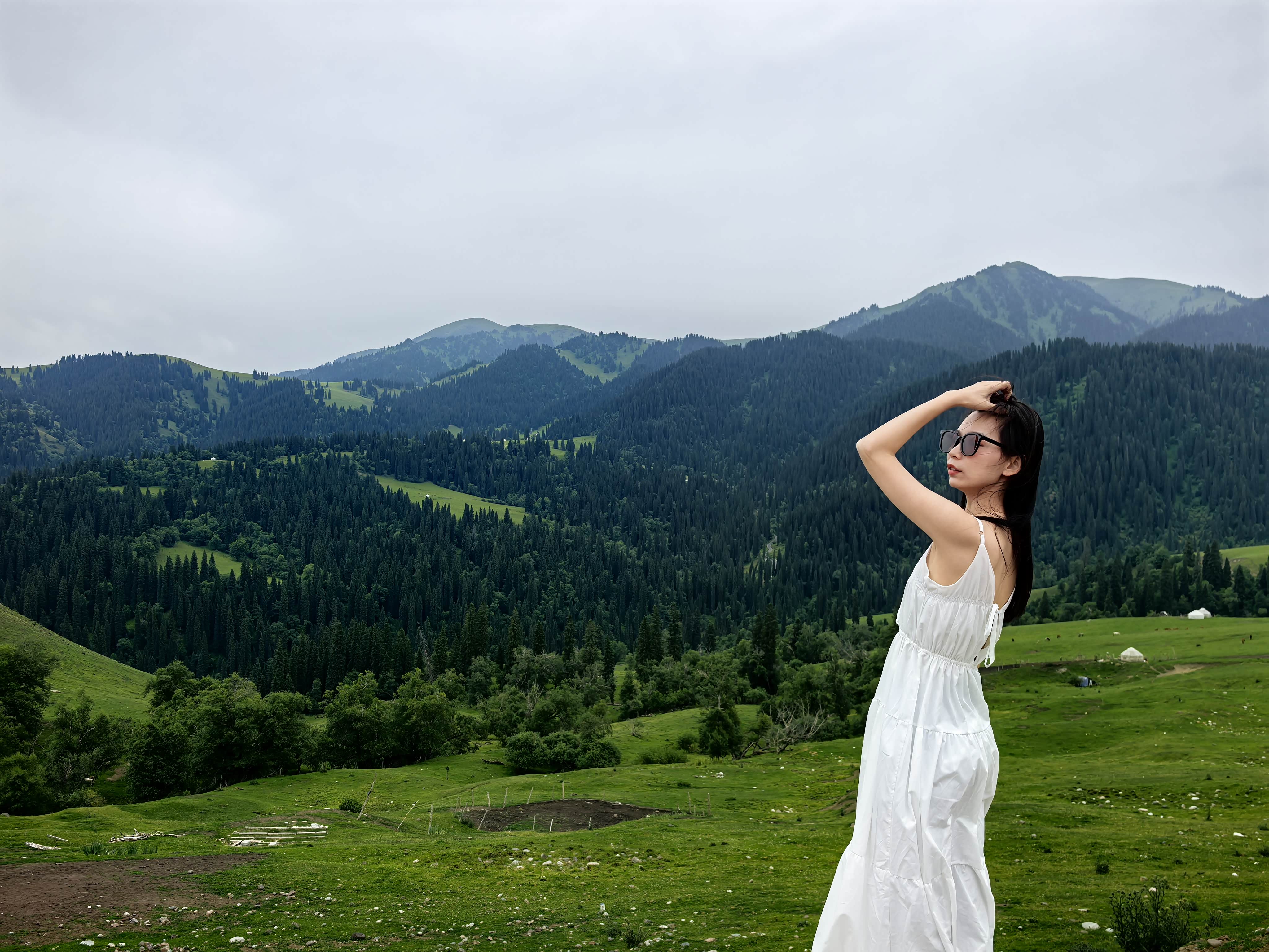 那拉提的绿,是波涛汹涌的。它不是平铺直叙的草场,而是随着山势起伏,涌成一道道柔和的浪。我们沿着木栈道走向深处,像是走入一片凝固的、绿色的海洋。阳光穿过云隙,在草坡上投下明明暗暗的光斑,哈萨克牧民的毡房像白色的蘑菇,零星散落在浪谷之间。风过时,带来青草与野花清冽的香气,还有极远处,雪山水川隐隐的寒凉。在这里,呼吸会不自觉地变深,变慢,仿佛怕惊扰了这片天地间巨大的、静谧的梦。