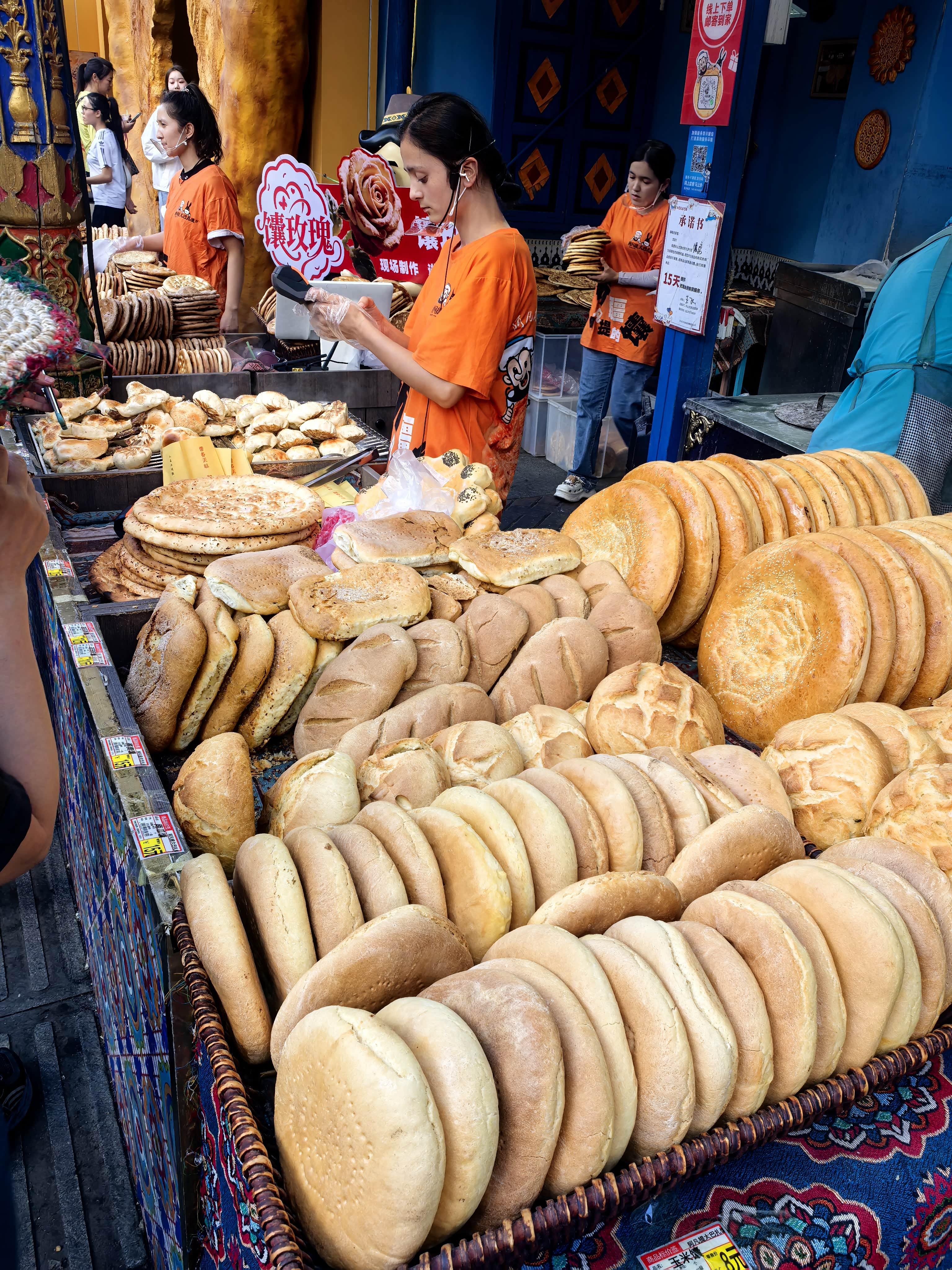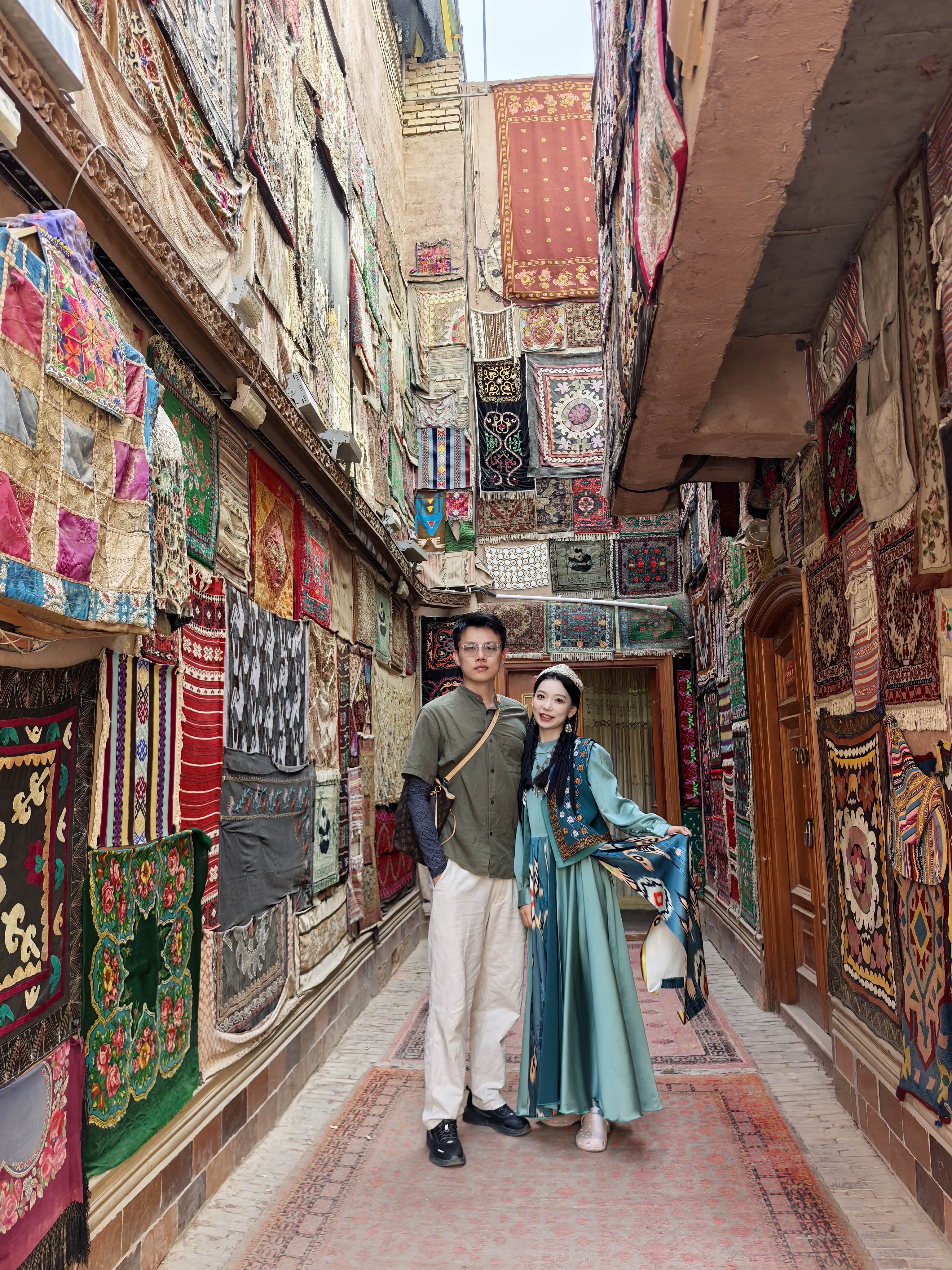带着满身的烟火气离开古城,我们又一头扎进了大巴扎的喧嚣与色彩里。那里没有时间的琥珀,只有生活的洪流,热烈地扑面而来。