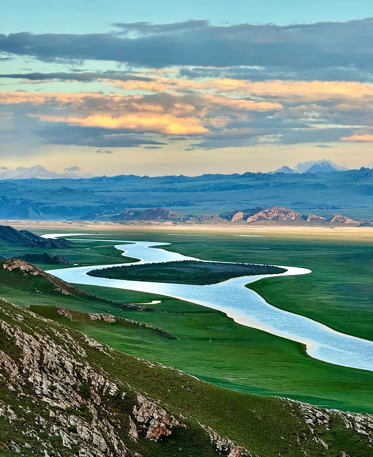而巴音布鲁克,是另一种史诗般的温柔。它的辽阔,是一种近乎于“空”的坦荡。地平线在极远处与天空相接,人的存在变得渺小,心却随之开阔。我们等待着日落,只为目睹那“九曲十八弯”的奇迹——开都河像一位极有耐心的画家,在这片巨大的绿毯上,用金光缓缓勾勒出它蜿蜒的足迹。当夕阳终于为每一道河湾镀上熔金的光泽,整片草原仿佛都安静了下来,只剩下风,以及那条流淌着液态黄金的河流。那不是风景,那是一首看得见的、流淌的牧歌。