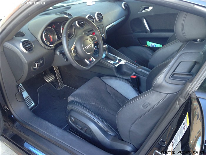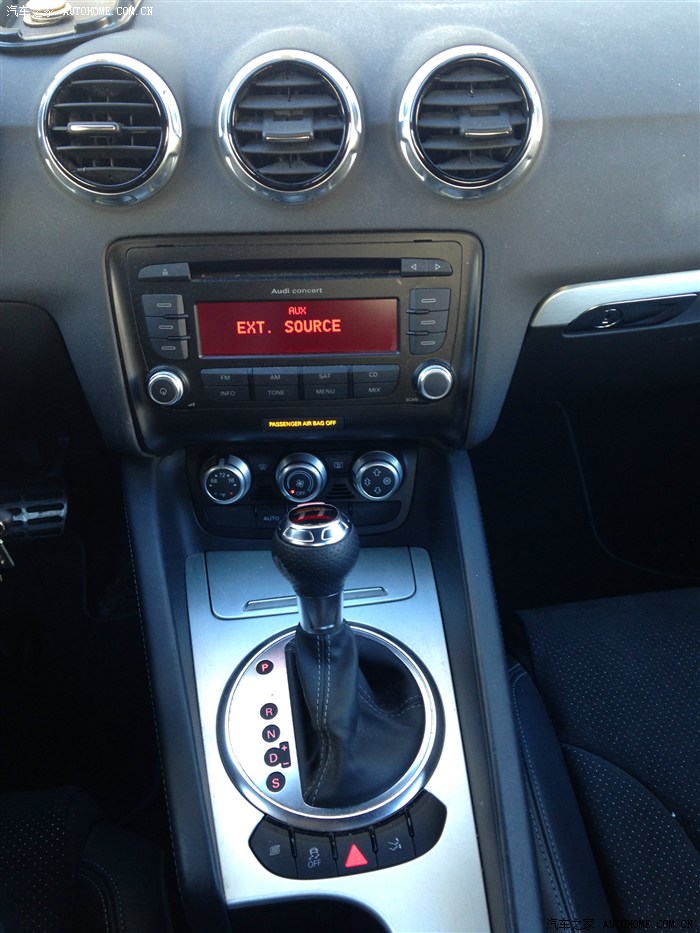 中间的显示屏就不说了,TT的诟病。下面四个按钮,依次是开启电磁悬挂,这个就是比如70km要求过弯,开启以后就可以110km过弯,感觉就把你整个人固定在椅子上。 第二个按钮是ESP关闭,然后是紧急灯,最后是尾翼升降。