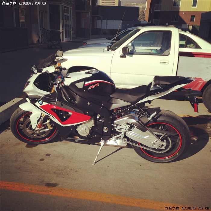 于是乎,今年1月份,又按耐不住自己的心,觉得川崎忍者300太慢了,于是准备换大排量,买了这辆2014 bmw s1000rr顶配, 出门价格19000刀,老婆帮我贴了红色轮毂!配合17寸,190的轮胎。