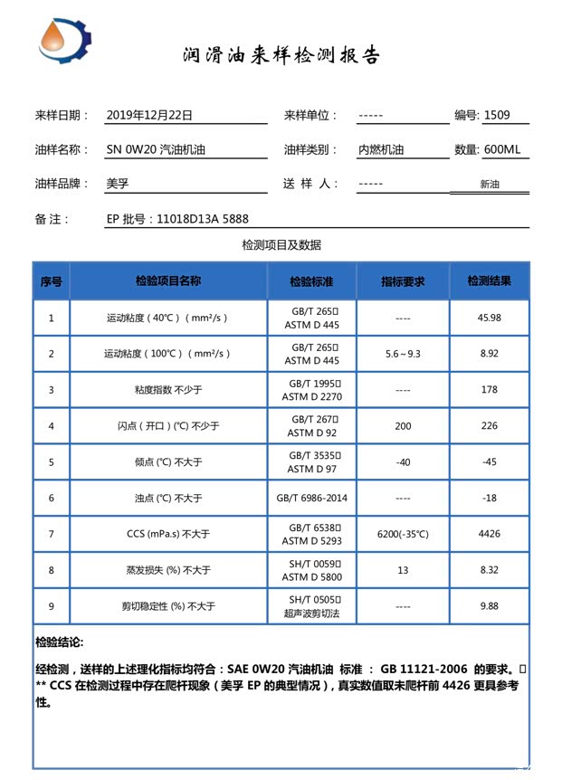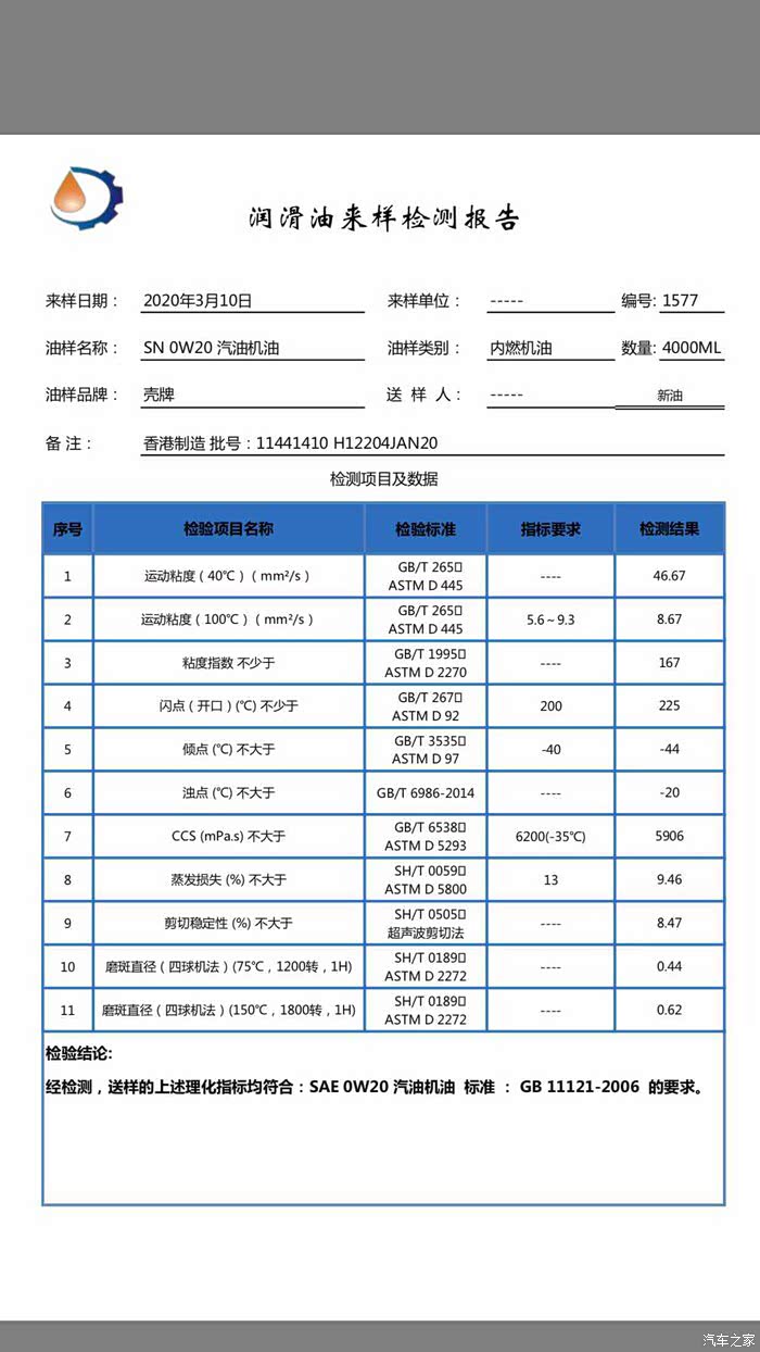 检测只对样品负责,样品由车友“雾光志成”提供。