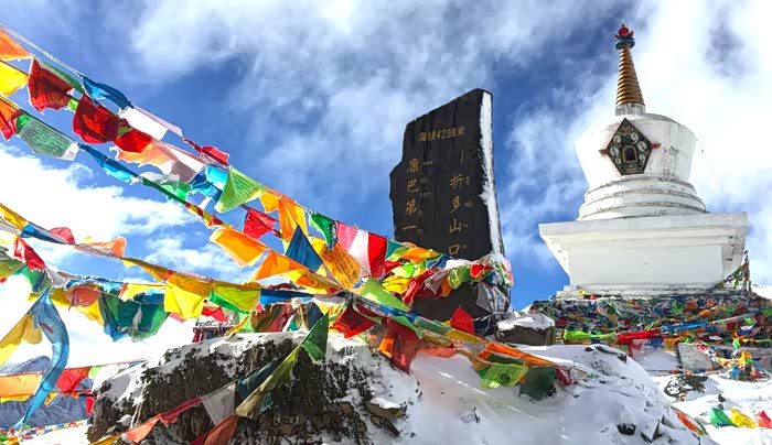 10月20日,翻越芒康境内的东达山,海拔5130米。高反最严重的一天。详见第5楼。