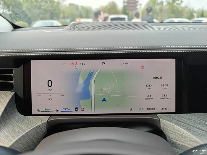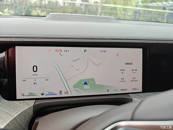 大概开了一个多小时到达目的地,高速与普高公路占比1:1,总共行驶了97.8公里,平均油耗显示3.9,平均电耗显示14.7,表显纯电续航剩余155km,掉了46公里,油箱续航剩余722km掉了40公里。根据92号汽油油价7.26元/L,计算公式:3.9/100*7.26*97.8得出油费27.7元,电费0.72元/kWh,14.7/100*0.72*97.8 得出电费10.4 元,合计金额38.1元,平均每公里0.39元。