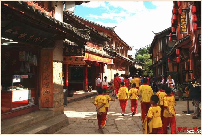 进入束河古镇,你可直抵束河中心集市,面积约250平方米,亦称束河四方街,在赶集的日子里这里非常热闹,曾是丽江皮毛交易集散之地。我们团就是在这里开始个人自由活动,又是在这里集合的。结果部分团员游兴太高,晚了好长时间,生生把我们下一站要去的黑龙潭公园挤没了