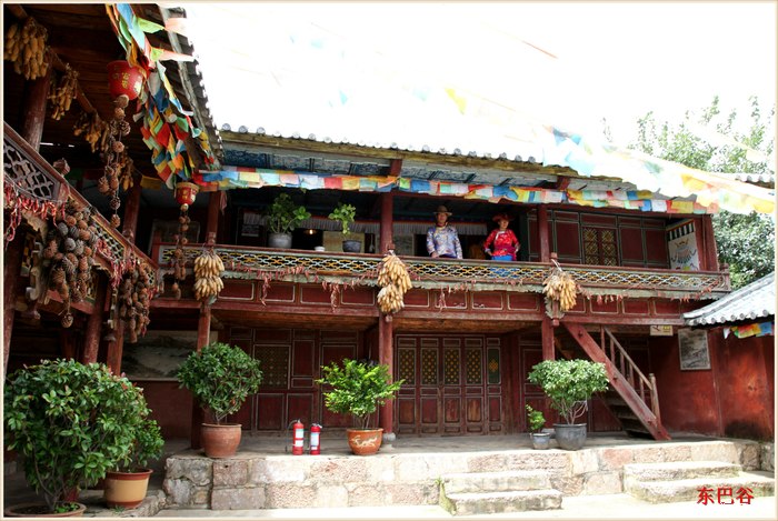 东巴谷位于玉龙雪山脚下,毗邻丽江古城,以其独特的东巴文化闻名于世。东巴文字又被称为“唯一活着的象形文字”,用东巴文字写成的东巴经也广流传于中国及许多欧美国家。东巴谷居主要住着纳西族人。纳西族以胖、黑为美,认为胖人身体好,能干活,黑点身体壮,所以纳西族称姑娘为“胖金妹”,小伙为“胖金哥”。纳西族至今保留着母系氏族的特点,纳西族男人的任务是“读书、喝酒、喝茶”,女子的任务是农活、家务、带孩子,所以在东巴谷,随处可见精美的手工艺品。纳西族以前实行一夫多妻,大媳妇在家里干活,挣钱,然后为丈夫娶二媳妇;二媳妇再干活、挣钱,为丈夫娶三媳妇。。。。。。东巴谷还有僳僳族、他留人、普米族、**、藏族的居民