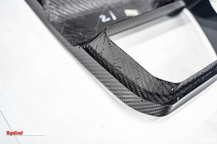 这个和V版的一样的,但是并没有选择正品的,现在国内的碳纤维做的也非常不错,同样是选择的干碳纤维材质的,重量轻气强度高,下图看下细节