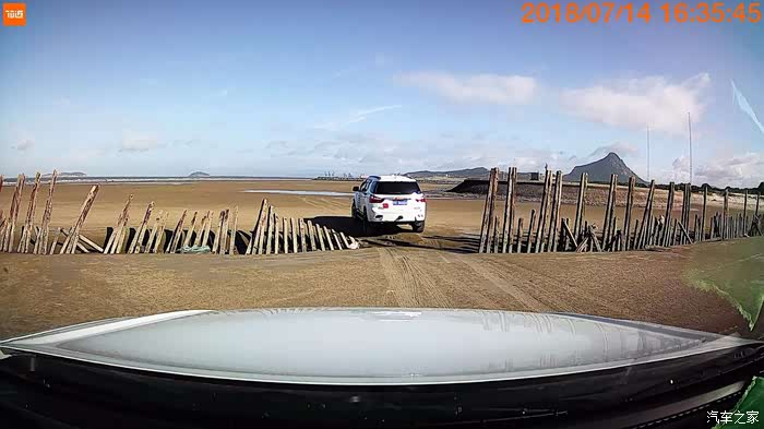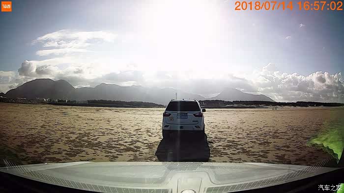 接下来就进入沙滩了。挂高四,前进。在沙地开车跟铺装路面的感觉明显不一样(我是第一次挂四驱,也是第一次开沙地,鸡冻??)。行驶时可以感觉到路面的滑动,当然,车车还是很稳的。而且沙地还有需要留意的地方很多,很多坑,冲太快一不小心就进坑了。虽说不会受伤,但是对车的冲击力还是很大的。安全起见,速度不要太快。