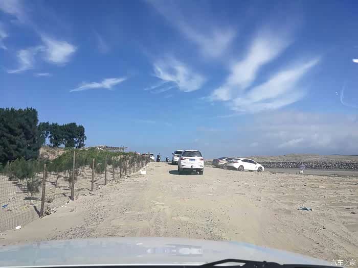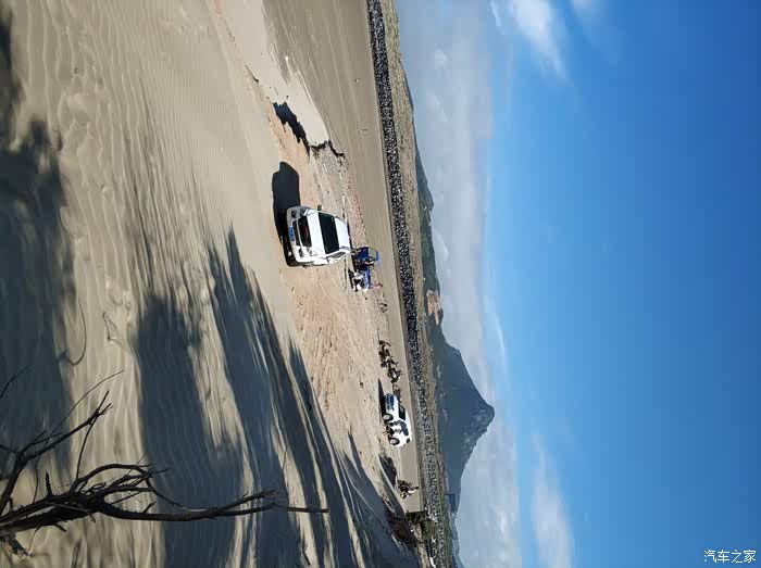 海边这个沙滩实在是咸,跑了一会儿车身、车玻璃上全都是结晶盐-----回去得好好冲洗下底盘(所以沿海地区一定要喷底盘装甲)。台风过后的天气实在是太蓝了。