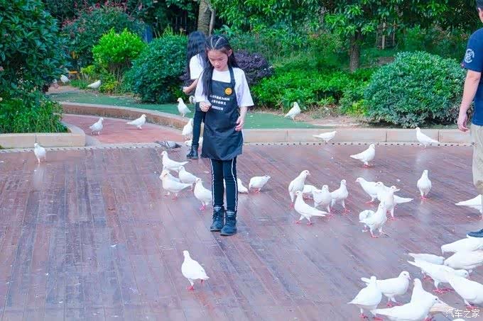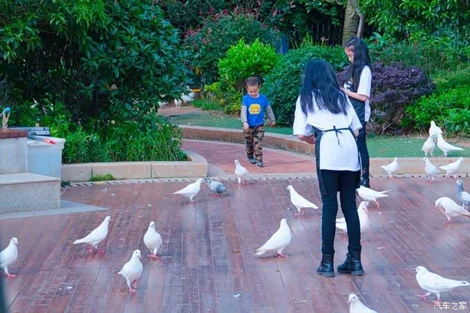 白天来到广场里,竟然还养了一群鸽子,5元一包鸽粮,小朋友们玩得很开心。因为听说晚上来做摩天轮比较壮观,所以商量着晚上在来。