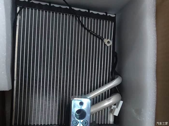 3.紧接着下一步对空调系统进行清理,并更换新的蒸发箱和鼓风机,可以看到厂家给的新的配件材质已经进行了改进,应该是把铝制的变成了合金的,对遇水氧化的问题进行了改善。