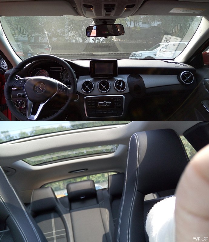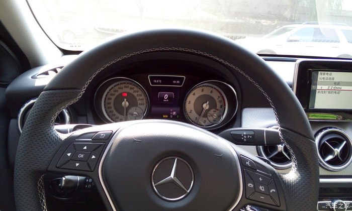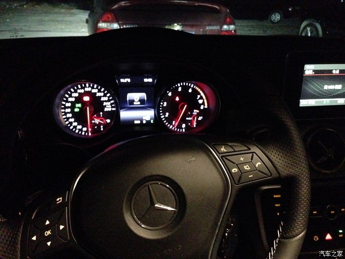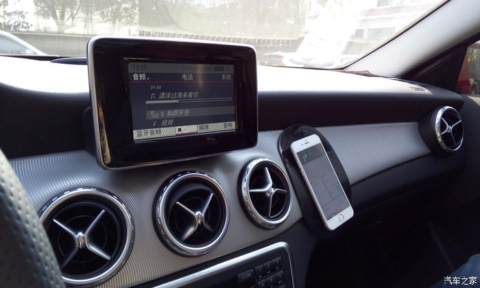 2)黑色内饰很沉稳,赛车座椅很舒服,全景天窗视野一级棒。屏幕跟我的 MX 4差不多大。不知道是不是可以改装加大屏。空调手动调节其实也还好,对我来说可以控制的感觉还不错。副驾驶座上比较鸡肋没有电动调节功能。汽车蓝牙音频链接手机发不出手机里的声音来,这个目前鉴定的原因是加装了导航后出现的问题,已经联系到杭州这边的连锁奔驰维修点,明天去维修看下。