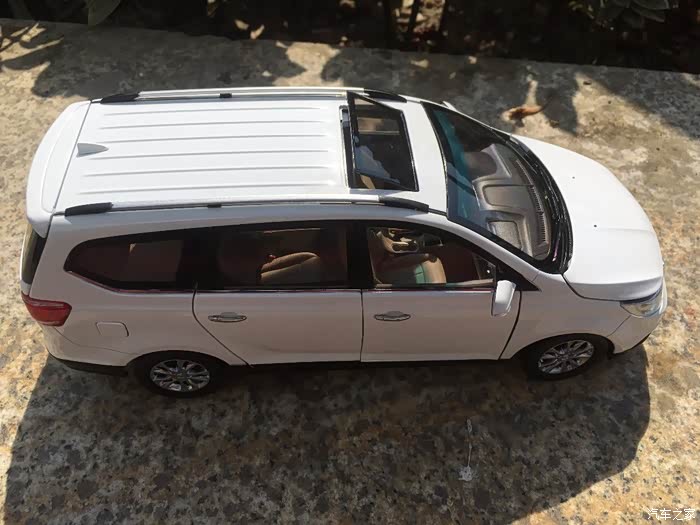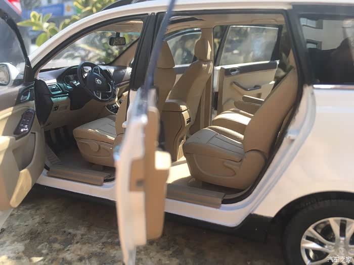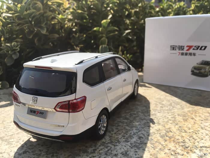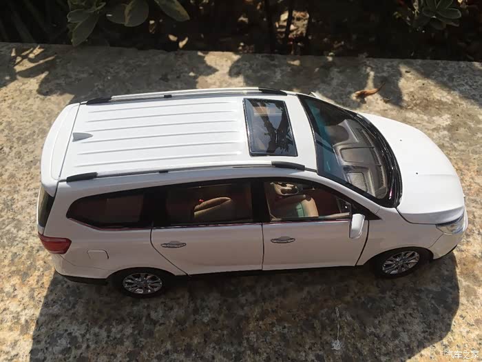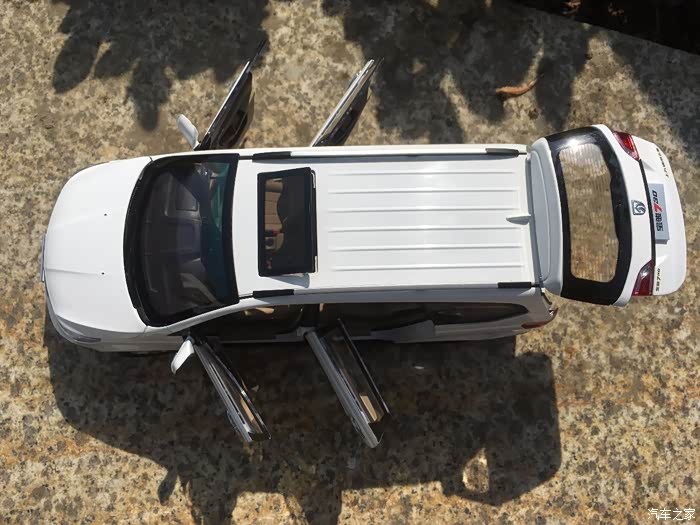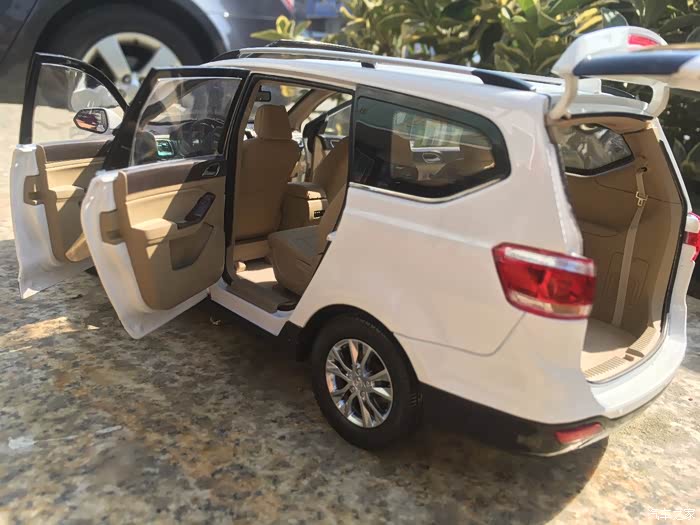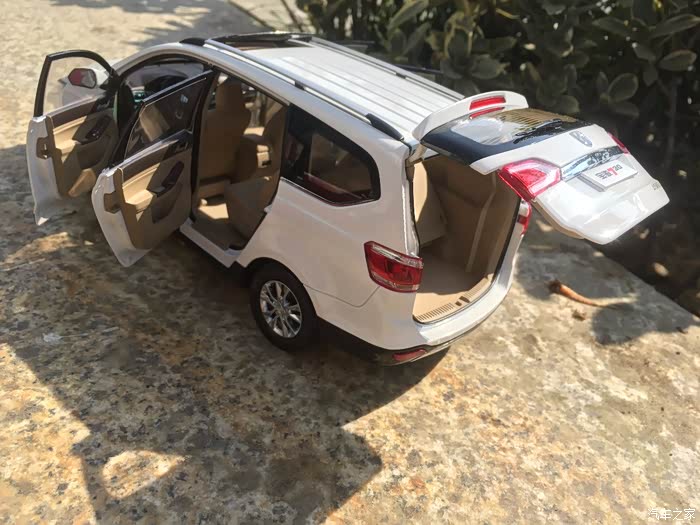 首先介绍一下我这次我拍的宝骏730车模。这款车模是来自原厂的1:18车模,标准的全开车模,天窗内侧遮阳板可以滑动,外侧可以打开,中央扶手箱可以打开,副驾驶储物箱也可以打开,前排座椅可以前后移动,第二排座椅也可以前后移动,第三排座椅可以放倒,反光镜可以折叠,油箱盖可以打开。