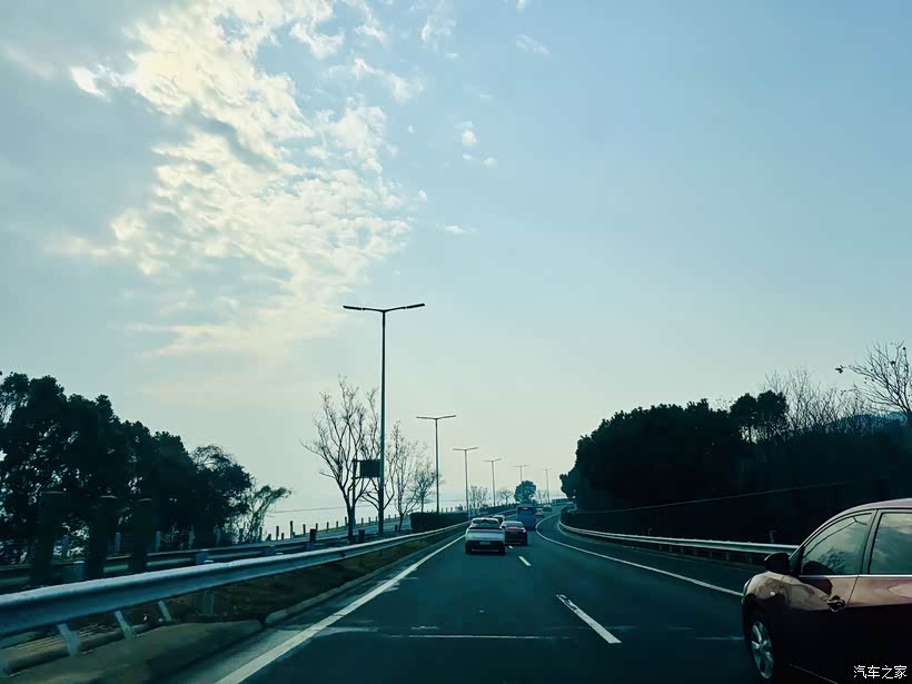 刚出发的时候天空还有些阴沉,但开着开着不一会天逐渐放晴了。行驶在环太湖公路上,一侧是波光粼粼的太湖,另一侧是连绵的青山,偶尔还能看到阳光透过云彩的丁达尔效应。这时我才觉得即使只是单纯地开着元plus在路上驰骋,对我来说也是一种缓解压力的好方式。工作的忙碌在这一刻被彻底抛在脑后,看着窗外不断变换的风景,心情也跟着放晴了。