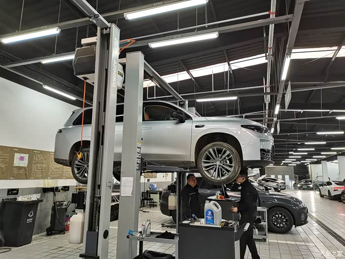 一、保养。因为提前一天预约了,11点多到店后就有专员安排了预约工位,加上正月里来保养的人不多,我的小零马上就在两个师傅的“伺候”下开始保养啦。