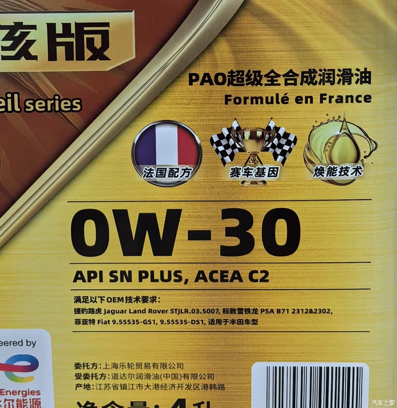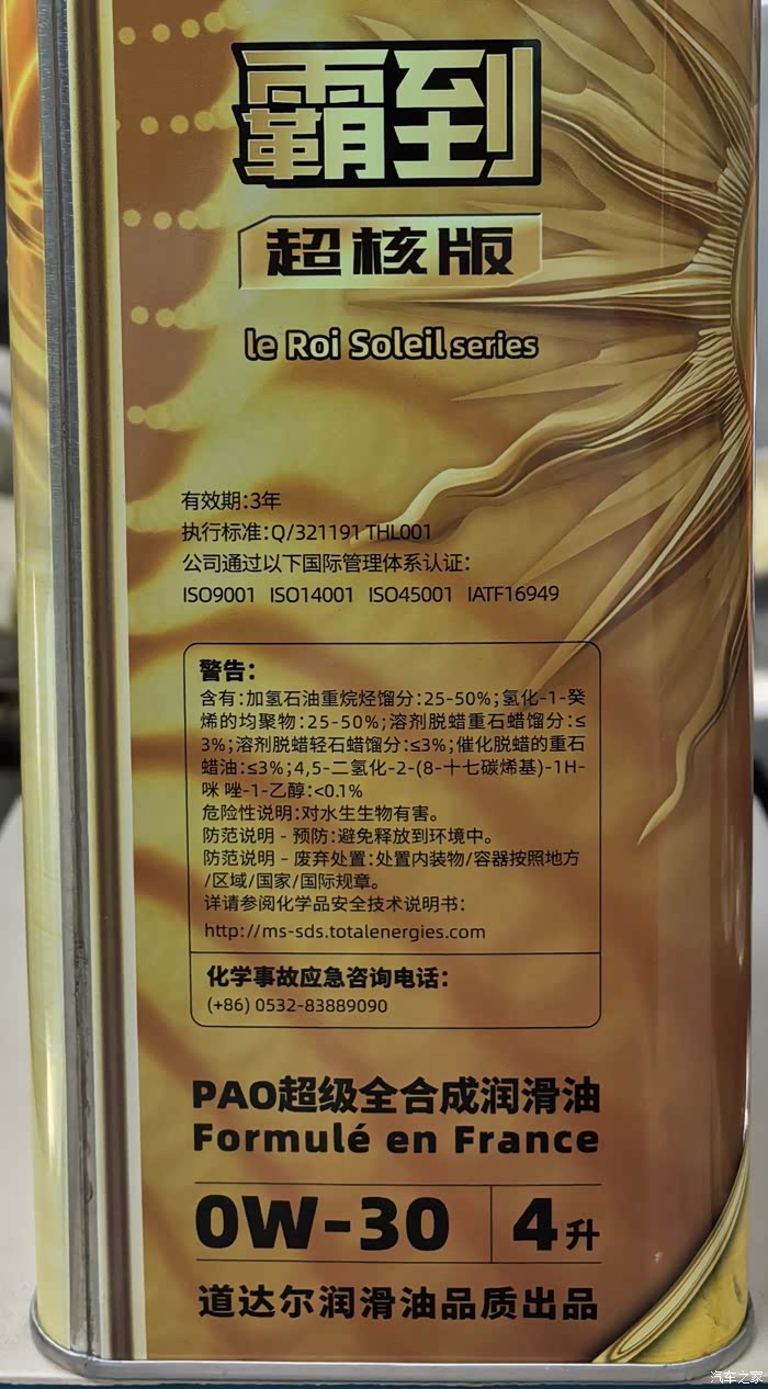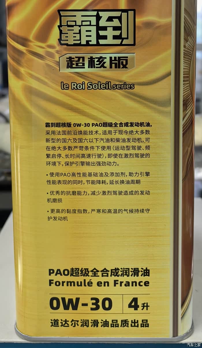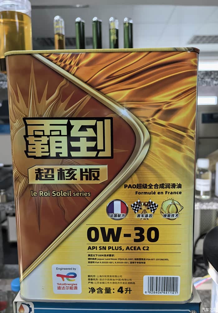,本次检测的一款机油叫霸到机油,来自道达尔能源集团,法国配方、赛车基因、焕能技术,听起来很强,是某虎最近上架的一款新产品。