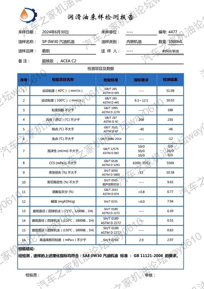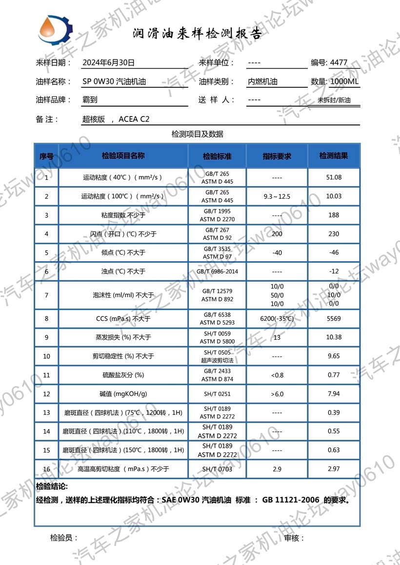 检测只对样品负责,检测为个人兴趣爱好,数据请谨慎参考,样品由论坛车友提供,一升装未开封新油。
