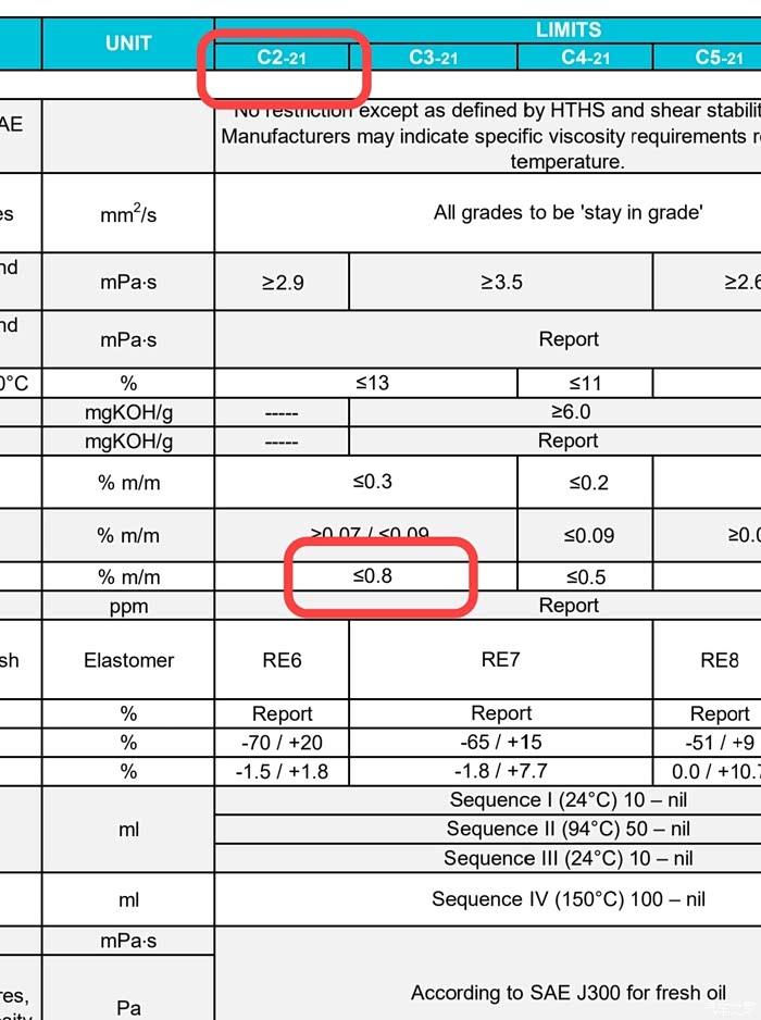 12.碱值7.94,C2对碱值没有要求,C3/C4/C5都是要求≥6。通过多次废油的实测,8左右的碱值对于国内普遍10000公里内的换油里程来说完全够用。