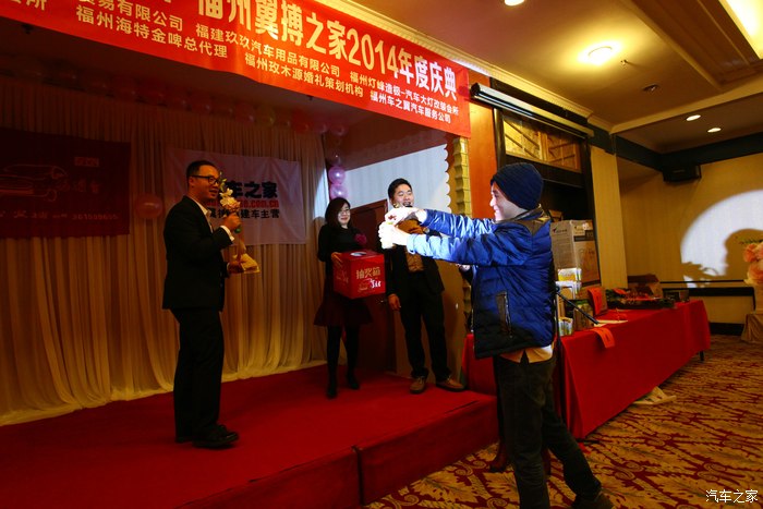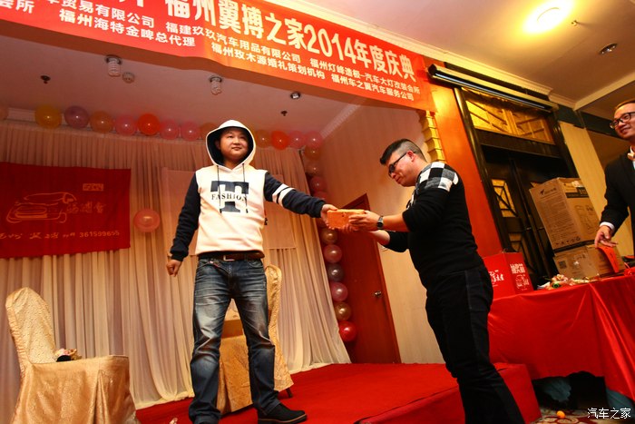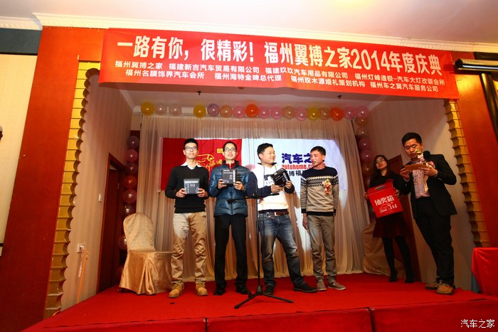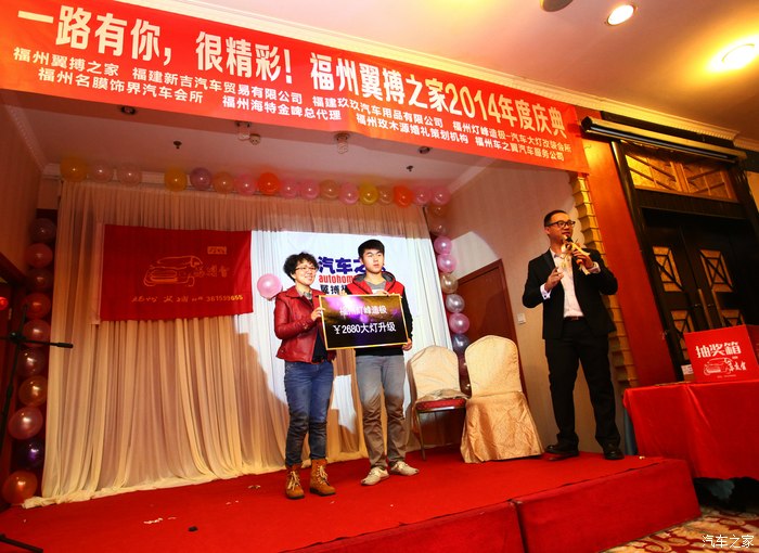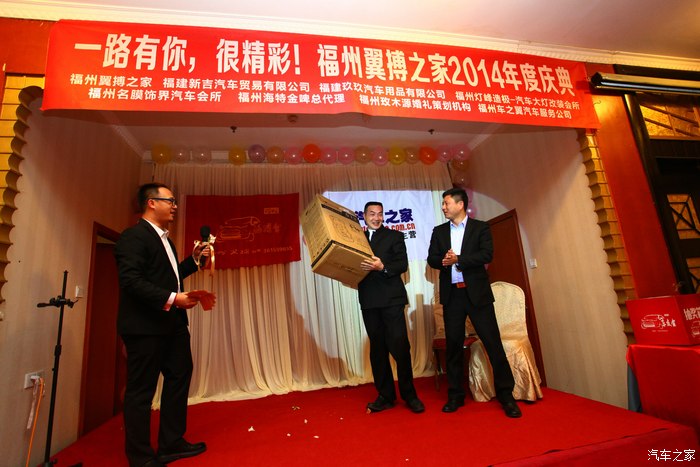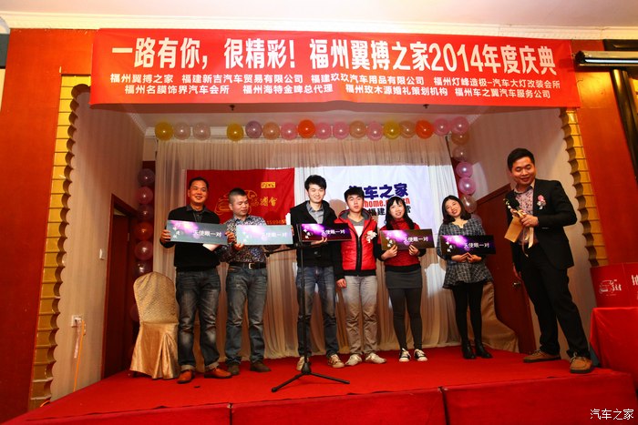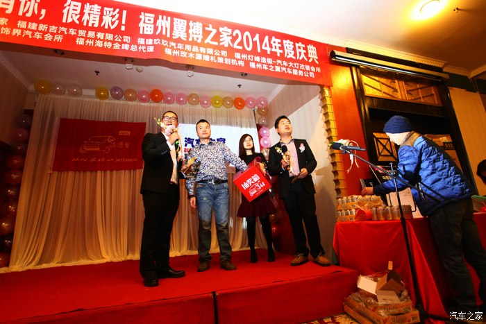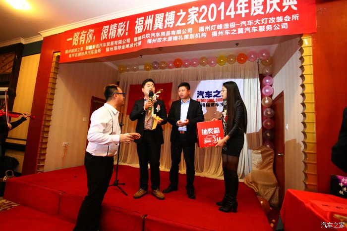 飞雪纳祥瑞,喜气送春来;骏马辞旧岁,金羊报春来!福州翼搏之家自成立以来,迎来了第一个新年。系元旦来临之际,我们于2014年12月31日晚上在黄金大酒店举行2015年新年联欢及尾牙宴。在这里,再次感谢大家对翼搏之家以及管委会的大力支持,同时感谢各大商家对福州翼搏之家过往一年的倾情赞助,每位参加活动的车友在获得年会伴手礼的同时,都参与了现场抽奖。