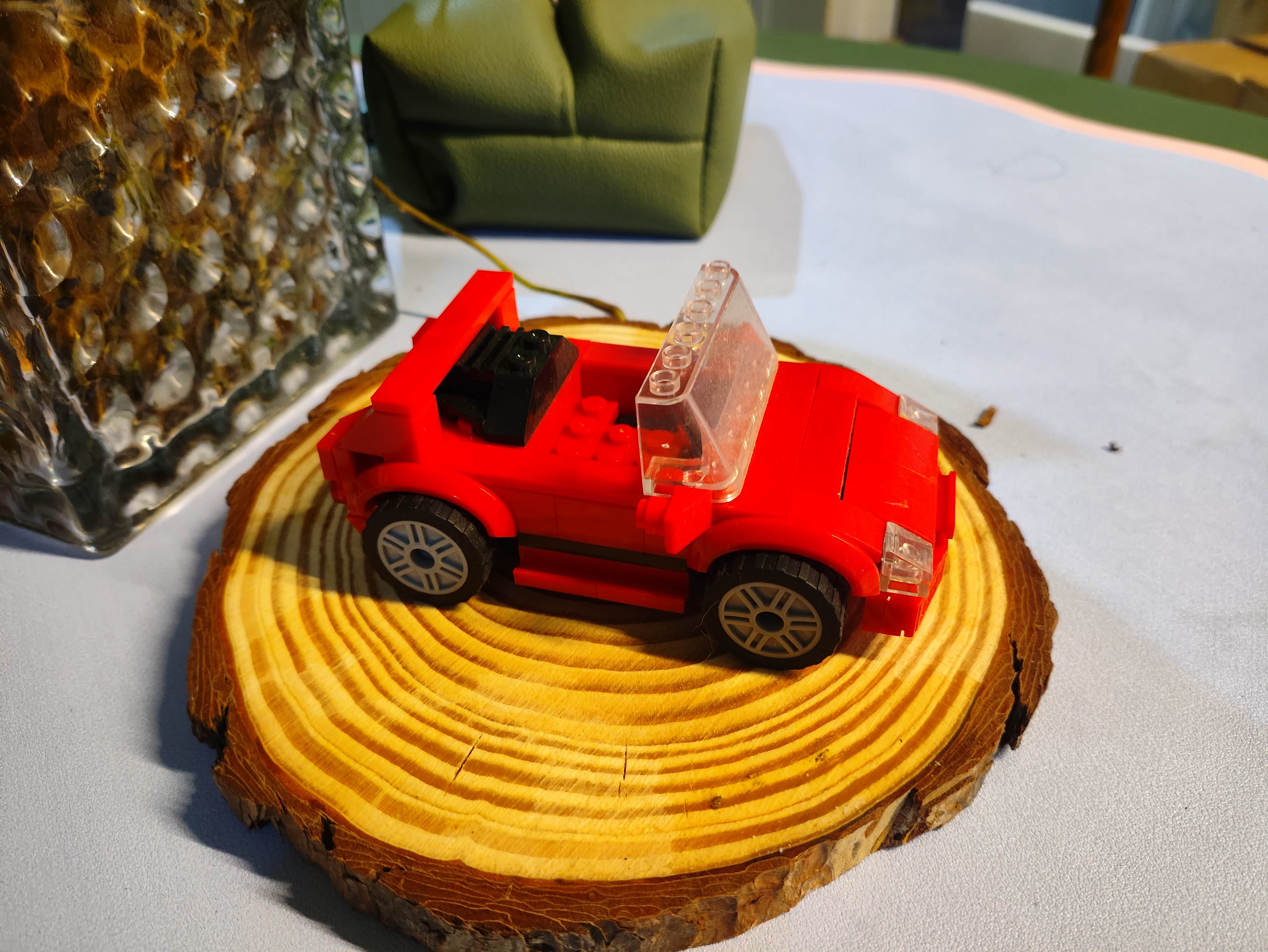 除了上面这些玩偶手办,我还有一些小型的汽车模型,有一个是积木拼装的,虽然比较简单的,也花了一个小时拼好。
