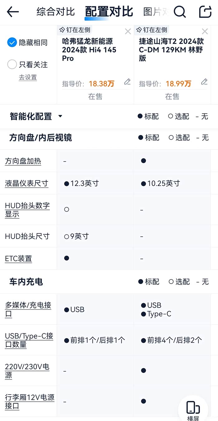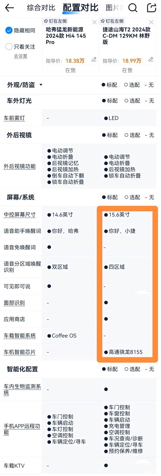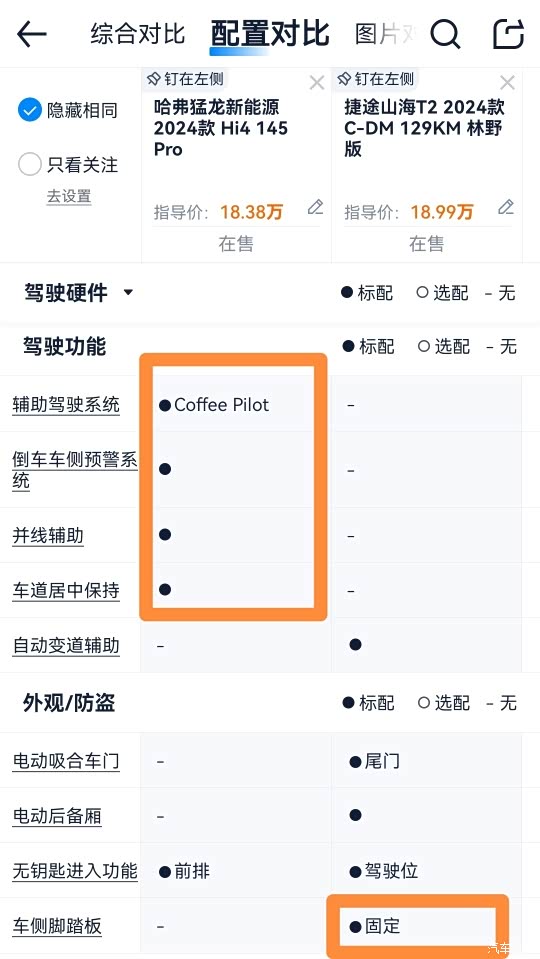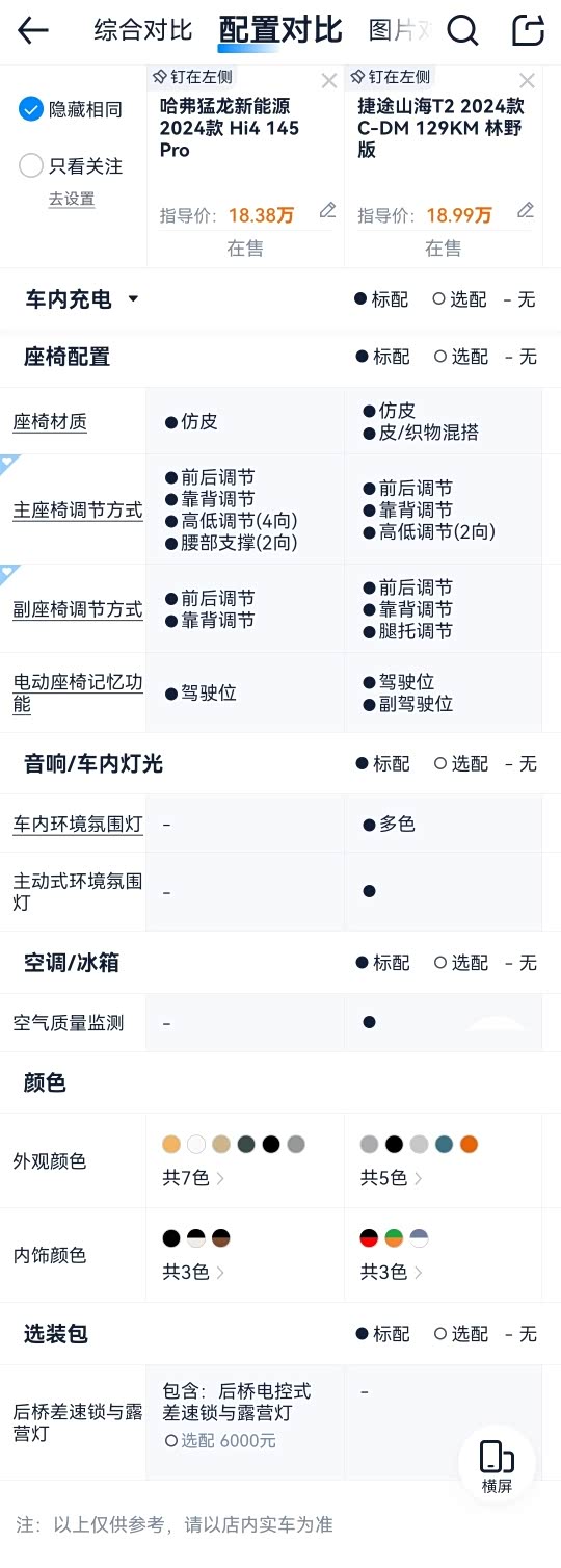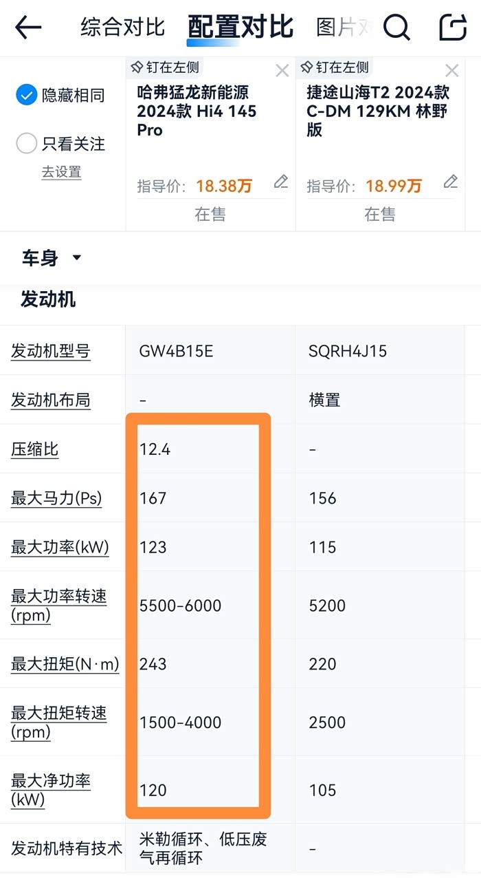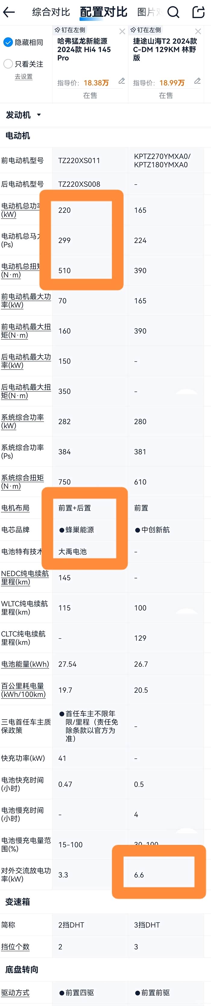 今年打算增够一台车,打算优先考虑方盒子的猛龙和山海T2,对比了一下数据,大致如下: