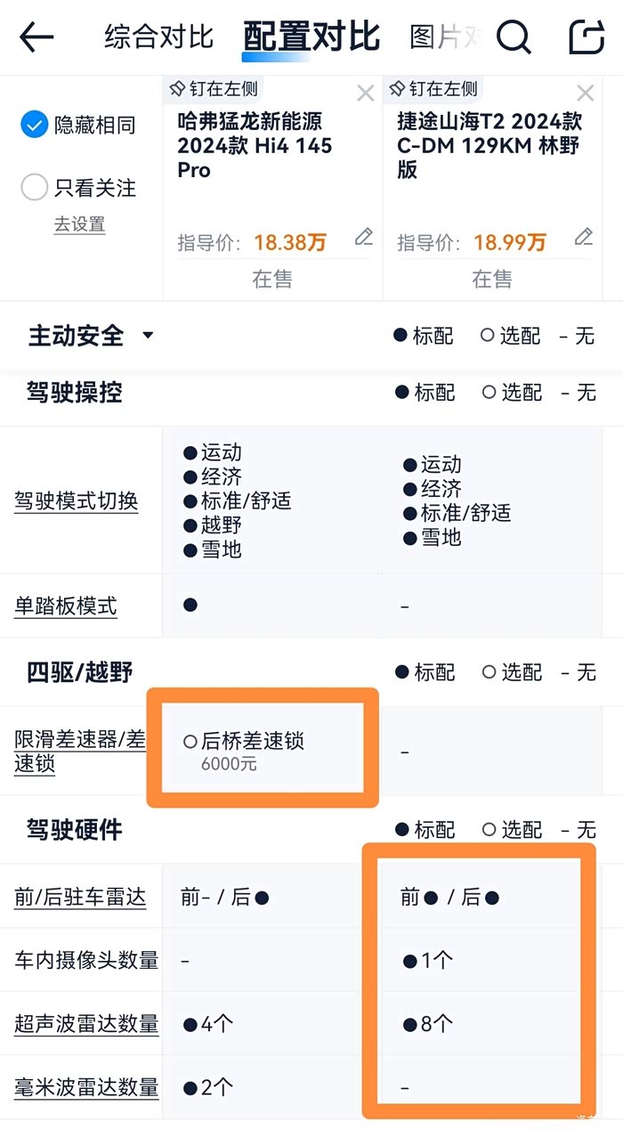五、加6000选装追平捷途的价格,但是捷途也多了几个传感器