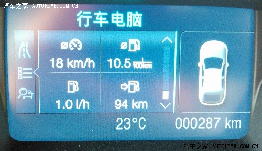 7. 5月11日上午, 开到287公里了, 时速依然18公里/小时,不过油耗又有小幅下降,降到10.5了。
