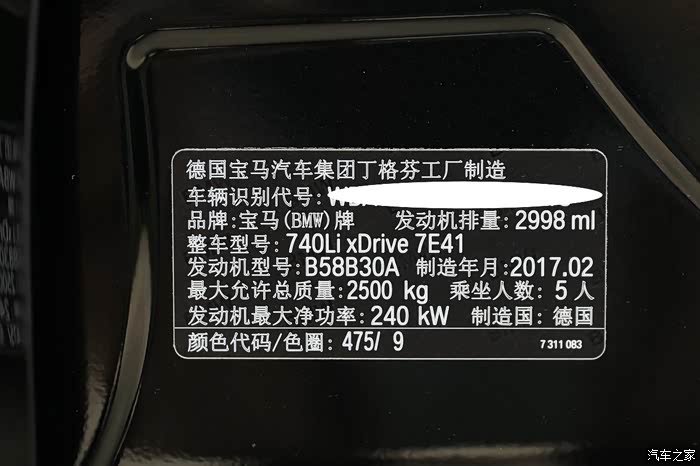 4、缘定宝马740LixDrive具体情况:生产日期:铭牌201702、四驱、五座、宝石青外、干邑内(预订时4S说是马鞍棕内,且还签了预订合同,但实际到货却是干邑内,这算是被套路了吗?还好干邑色最终看还可接受)、Alcantara灰色翻毛顶、出厂加M套(按4S店话说:外观跟760一样!偷乐一下,可一想怎么可能和760一样外观呢?明显夸张,事实也是不可能一样,比如19寸和20寸轮毂就不同,其它外观倒是差不多)。配置:没有夜视、没有魔毯、没有宝华、没有ACC(比16款减配了ACC)、驾驶辅助有一部分、其余配置该有的都还有。因不想苦等,很遗憾宝华音响和增强型驾驶辅助没能增配!这是我最喜欢最想加的配置。要了却遗憾,只能后期改装把宝华加上(帖子第二部分有完美改装宝华专题美图),有说法“无宝华不7系”,想想还是圆了这个心愿,都到此田地了,不留太多遗憾!