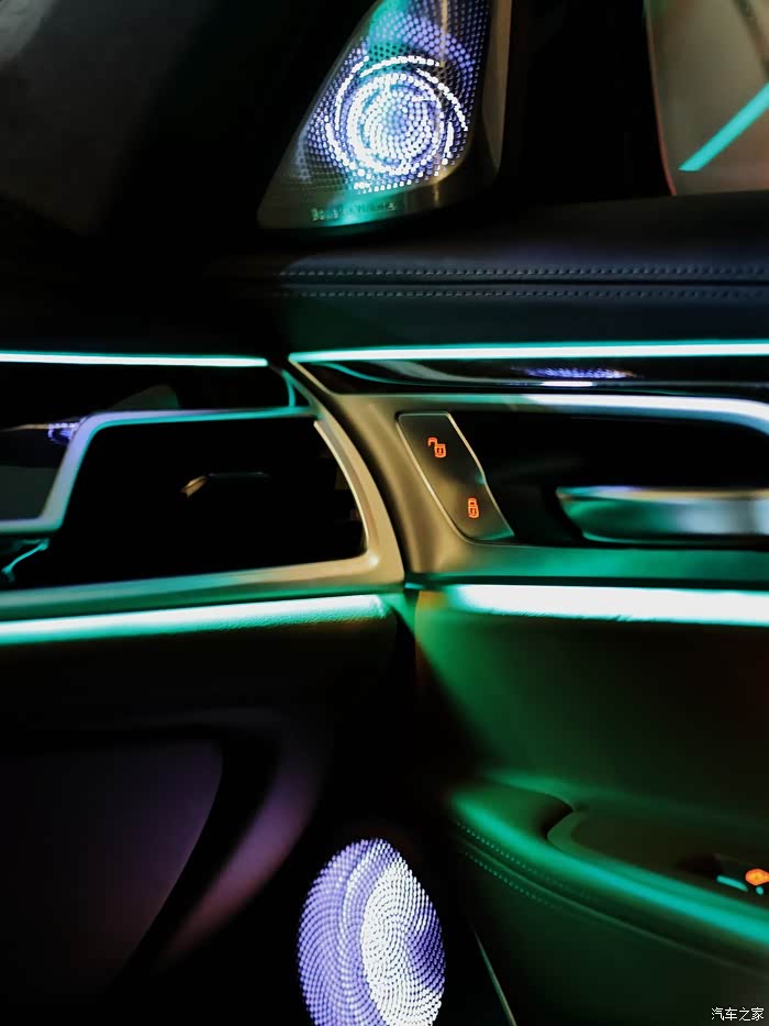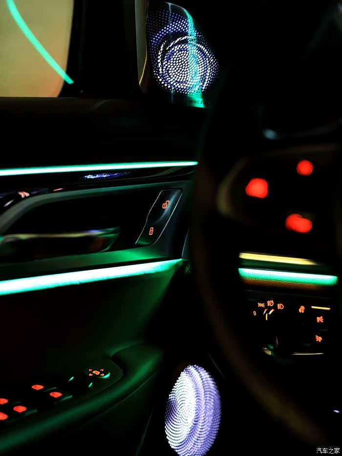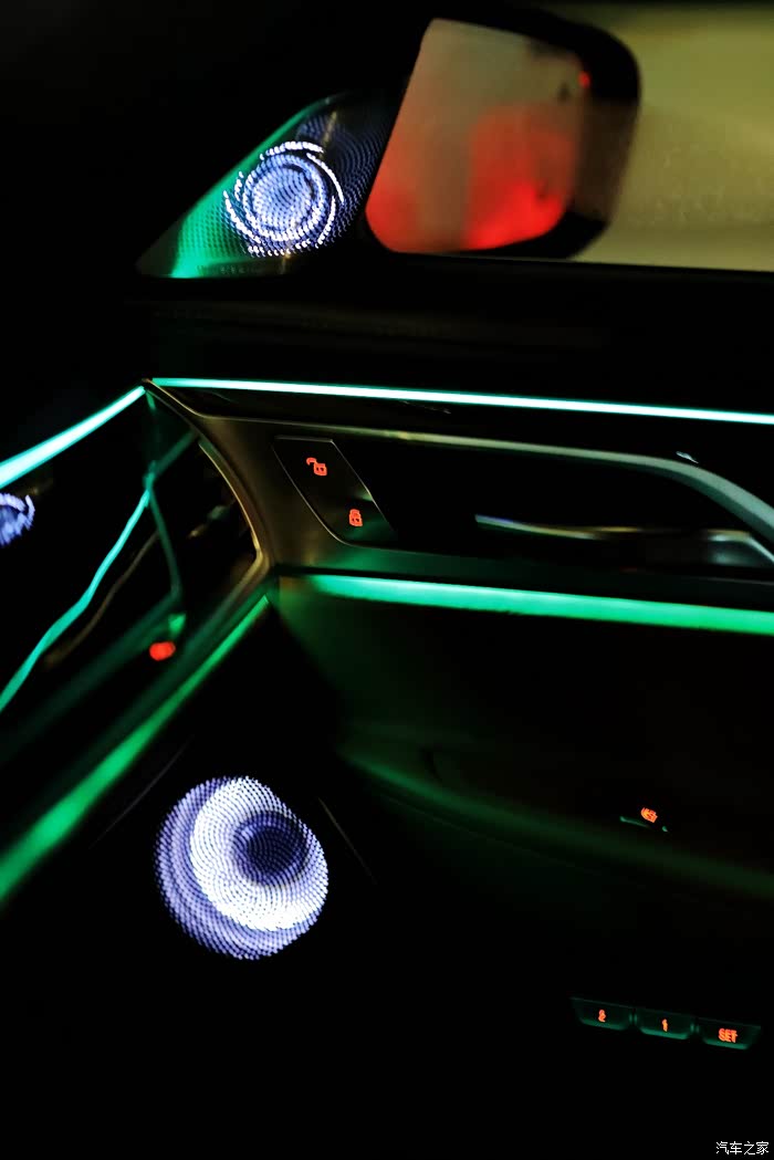 3、视觉效果:除音质明显提升,最最重要的发光喇叭单元,对营造7系车内的豪华感大大提升,逼格满满。