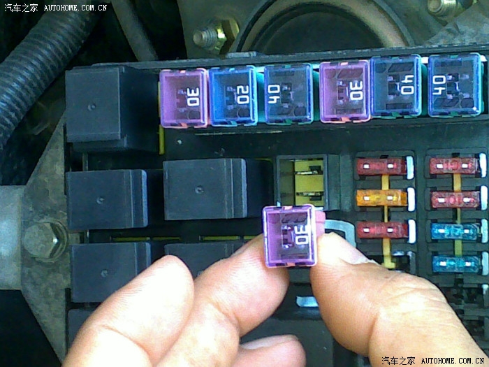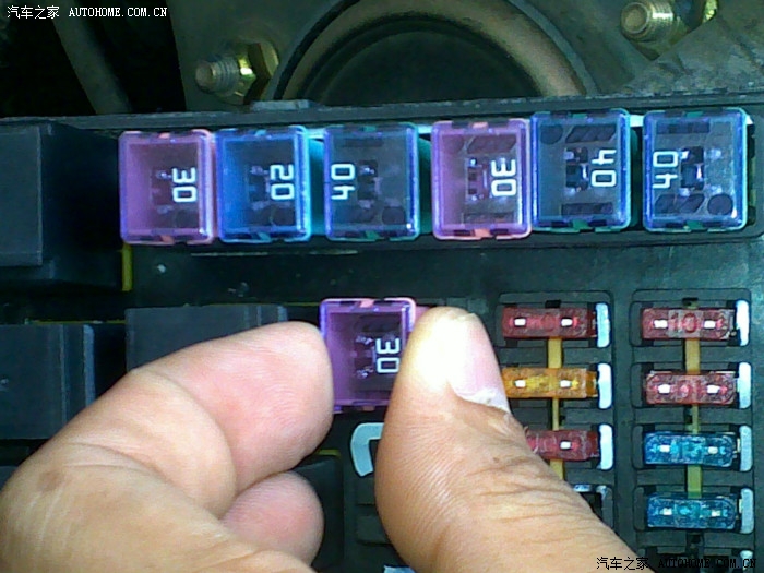 21、我的两个手指头正在努力拔掉粉色30A保险,这个是原车中控的保险,等下换二极管+保险那个,避免原车中控在升窗过程出现冲突。