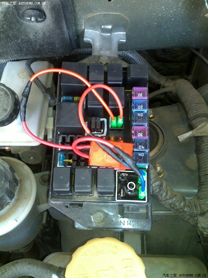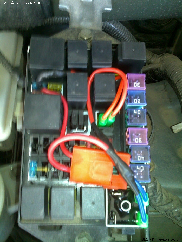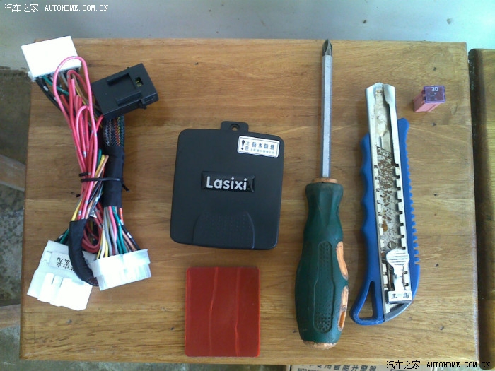9、在朋友的汽修店拿的。。。喇叭口线插4条、二极管一个、保险盒一个、30A保险一个,回来后把线接好了。