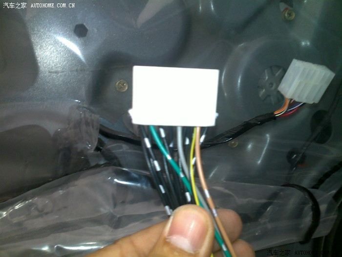 40、朝下的插头是中控的,就是这个要与自动升窗器插口连接。朝上的插头是后视镜电路。