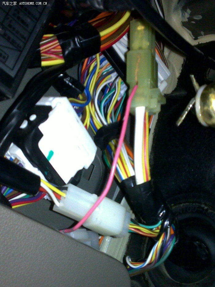 63、进行电源连接的白色常电线,在离合器的左上方最粗的那条白线就是了。