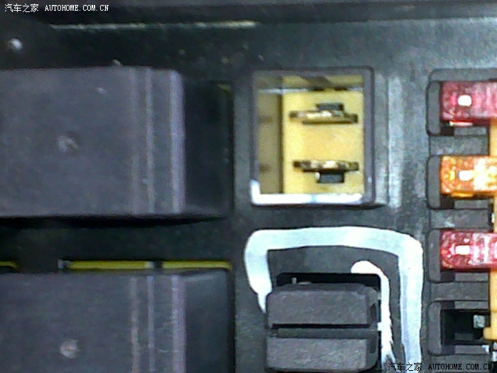 12、保险盒打开是这样的,从左到右分别是30A保险》》》白色的是保险插销座》》》红色保鲜盒套住白色插销座