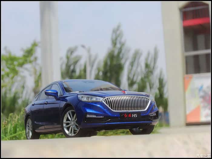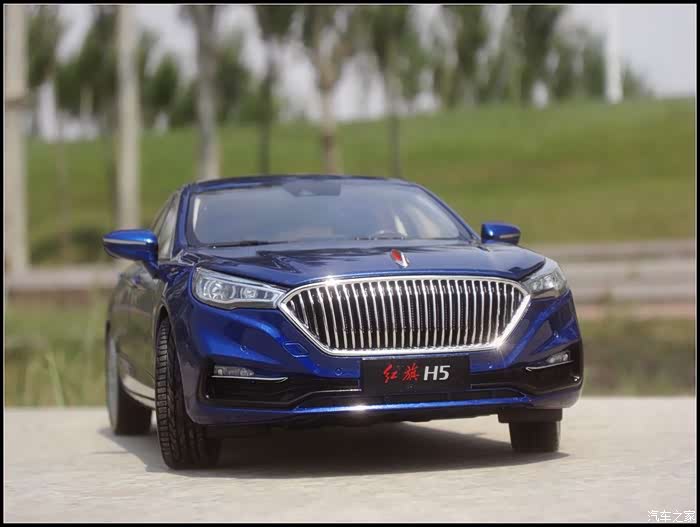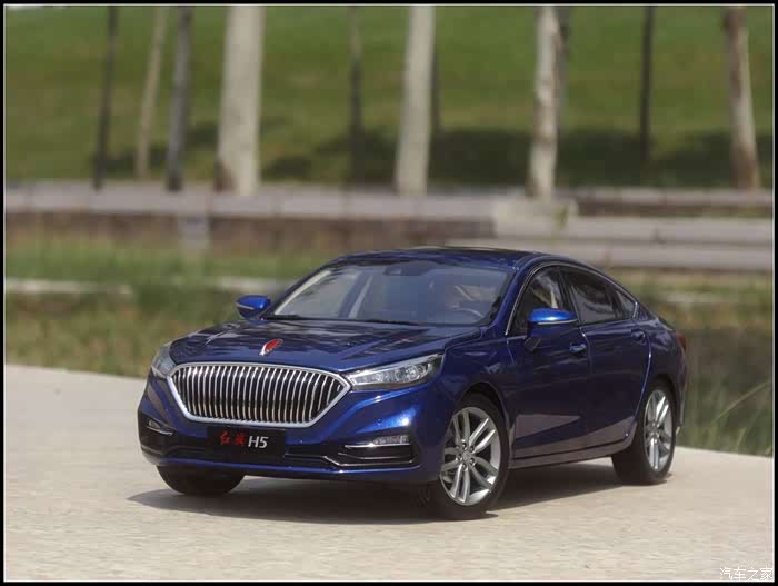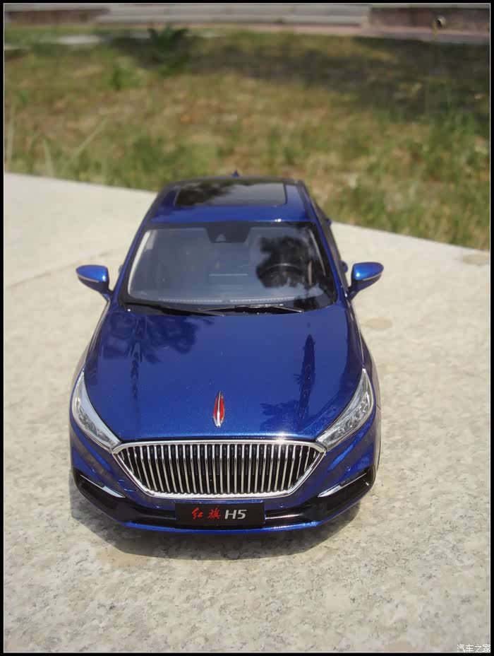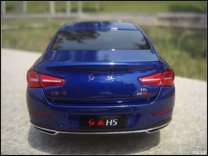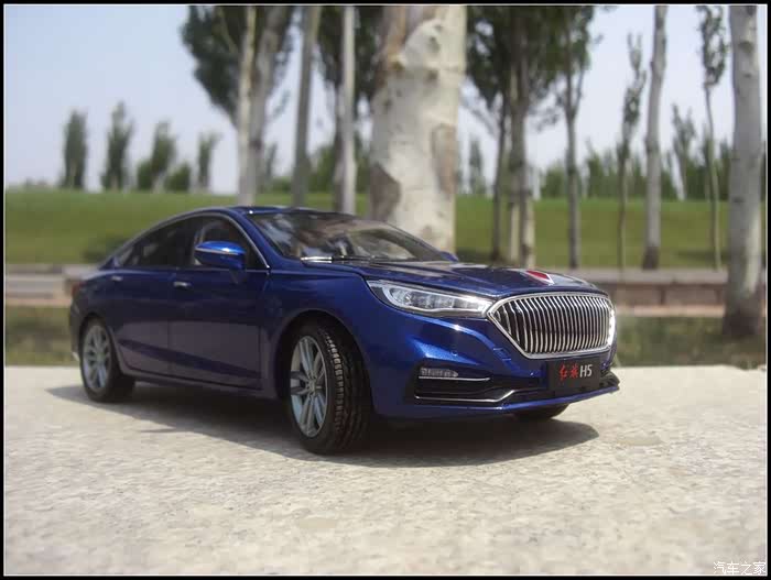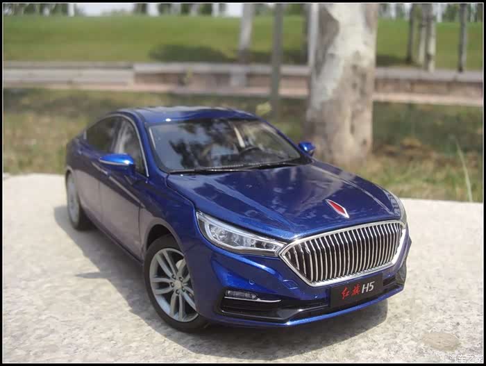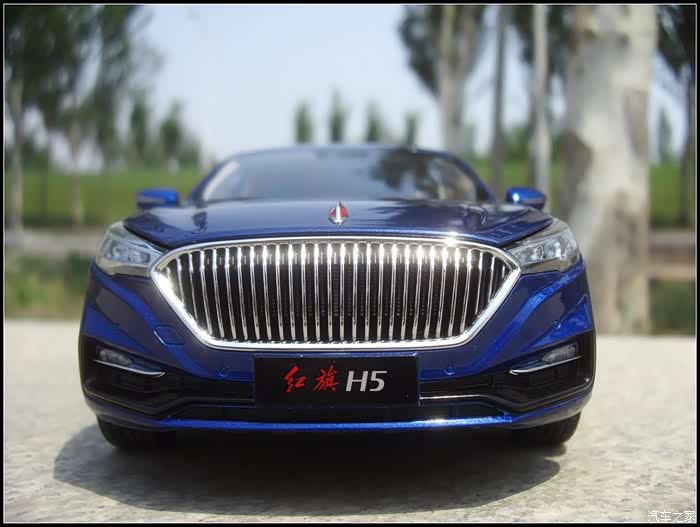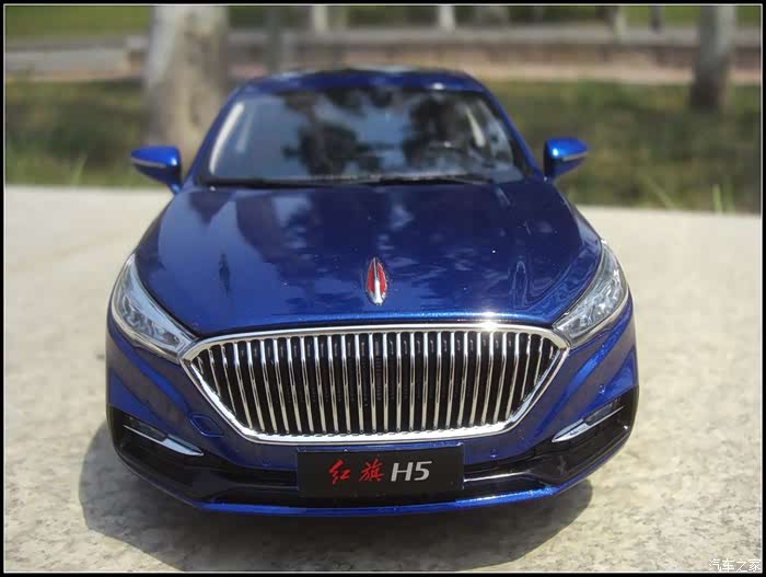提起红旗轿车人们所能联想到的是阅兵车以及庄严沉稳的设计,而年轻动感似乎和这个品牌并没有什么直接的关系,然而近期上市的红旗H5轿车则给完全给人一种与以往红旗轿车截然不同的造型设计风格,作为汽车模型的爱好者的同时我也是一个红旗粉,收藏了数款红旗轿车的模型当然不会错过这次这部H5模型,仅凭一点就证明了H5与以往的红旗轿车不同,那就是之前收藏的几款红旗毫无疑问都是黑色,而这次我选择了更加时尚的蓝色,因为对于这样的一个车型设计黑色实在彰显不出车身动感的腰线。