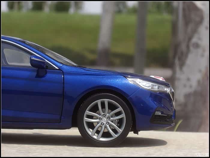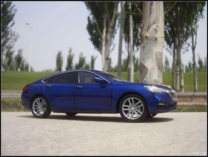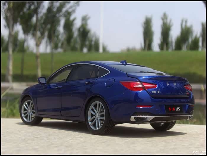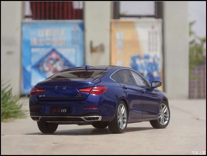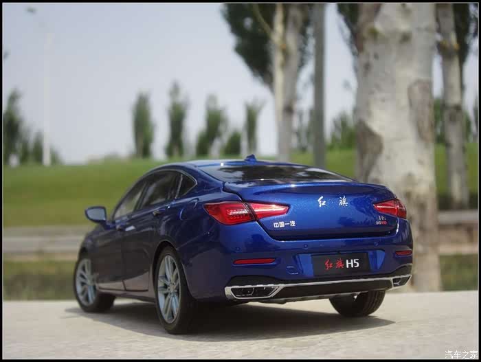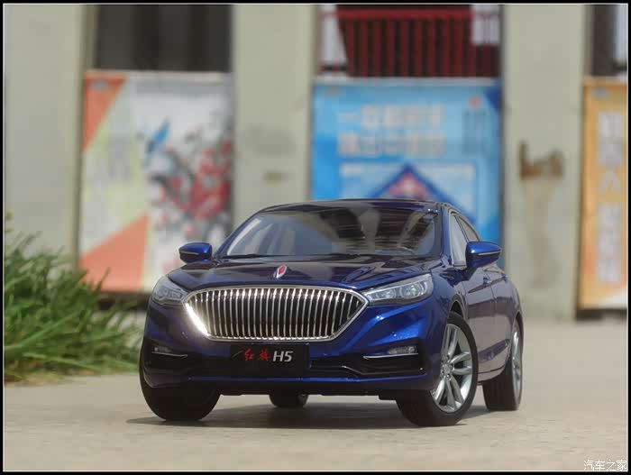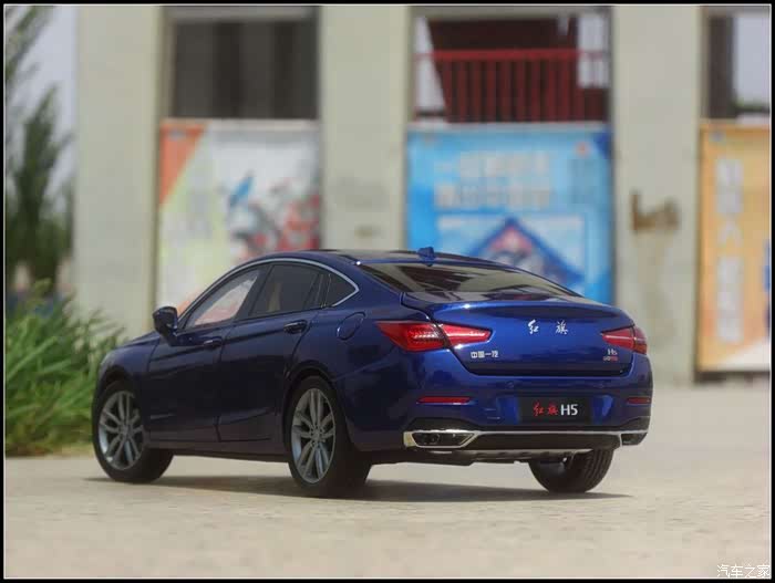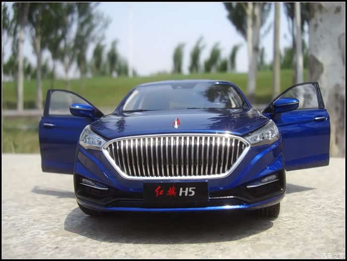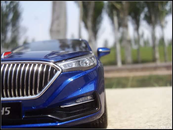 提起红旗轿车人们所能联想到的是阅兵车以及庄严沉稳的设计,而年轻动感似乎和这个品牌并没有什么直接的关系,然而近期上市的红旗H5轿车则给完全给人一种与以往红旗轿车截然不同的造型设计风格,作为汽车模型的爱好者的同时我也是一个红旗粉,收藏了数款红旗轿车的模型当然不会错过这次这部H5模型,仅凭一点就证明了H5与以往的红旗轿车不同,那就是之前收藏的几款红旗毫无疑问都是黑色,而这次我选择了更加时尚的蓝色,因为对于这样的一个车型设计黑色实在彰显不出车身动感的腰线。