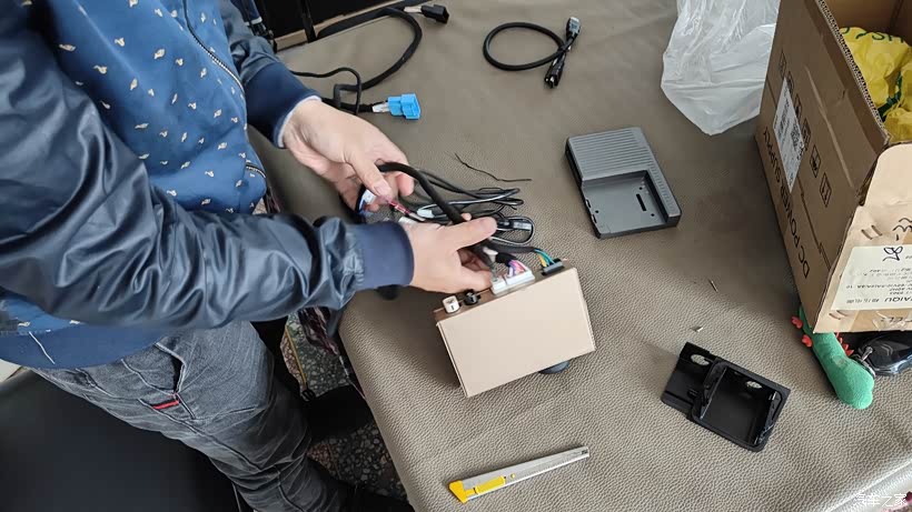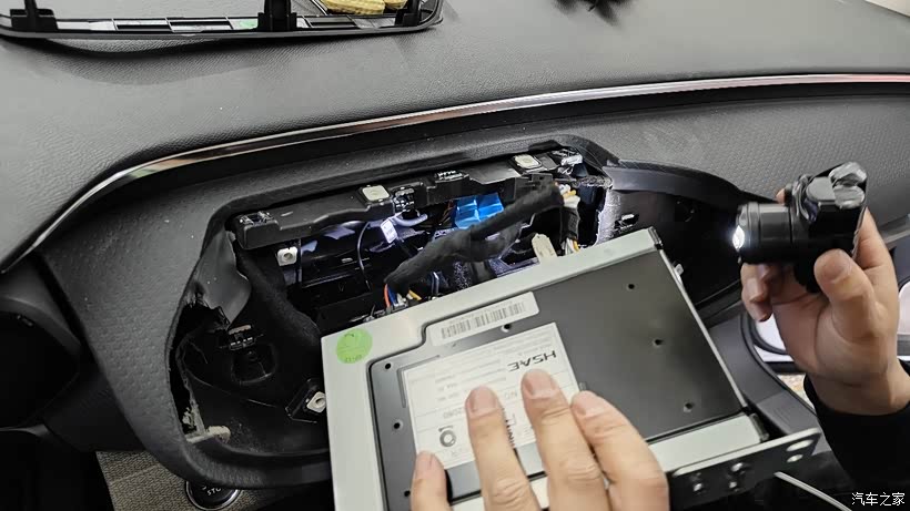 拆开中控,取出原车主机,将线路对插即可。