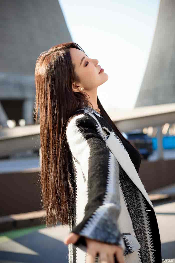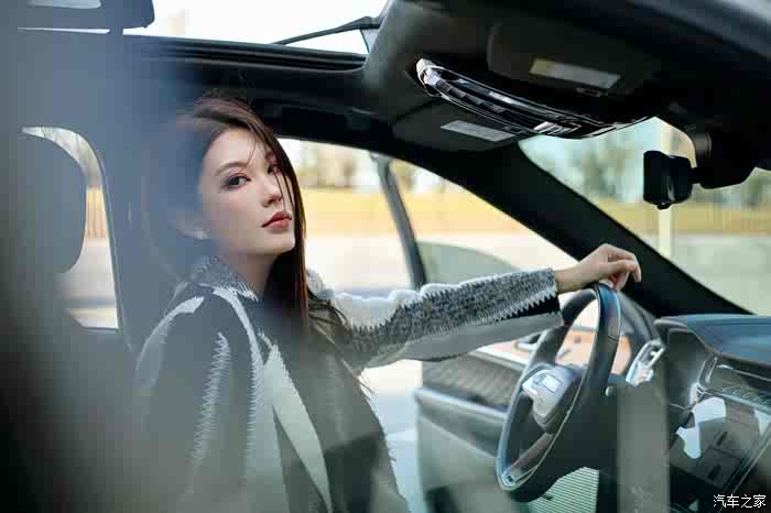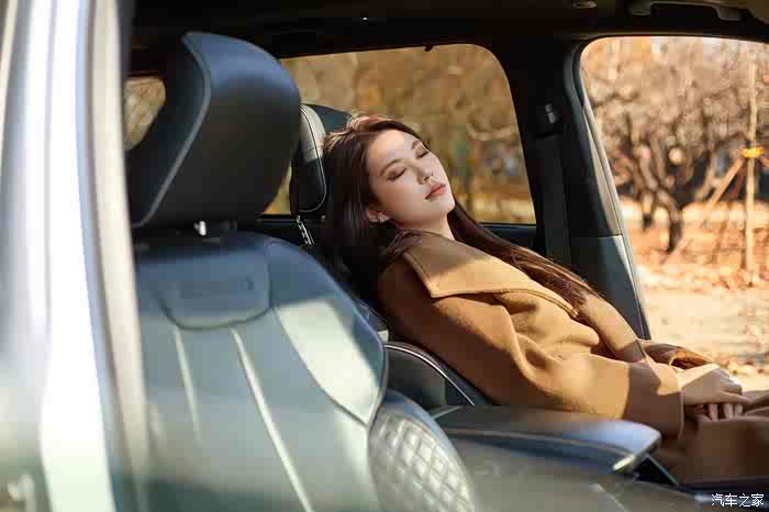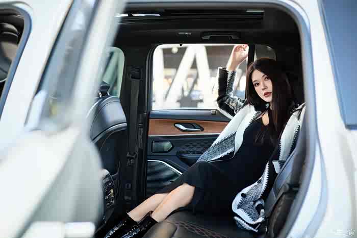 对了,这台车的后排乘坐质感也值得一说,于是,我让新月来到这台车的后排。