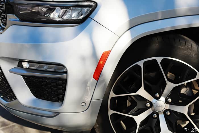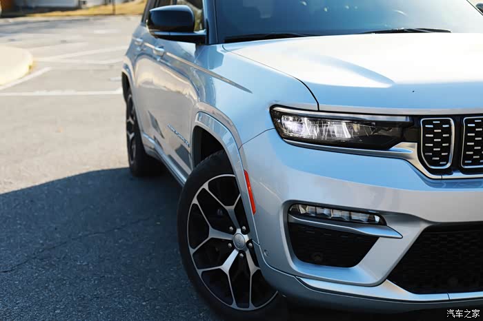 全LED大灯相当地炯炯有神,上LED灯带,下亮银镀铬的双横条设计,再搭配银灰色车身。这种豪华飒气的感觉还是很突出的!这也是新月小姐姐会买这台Jeep的原因之一。